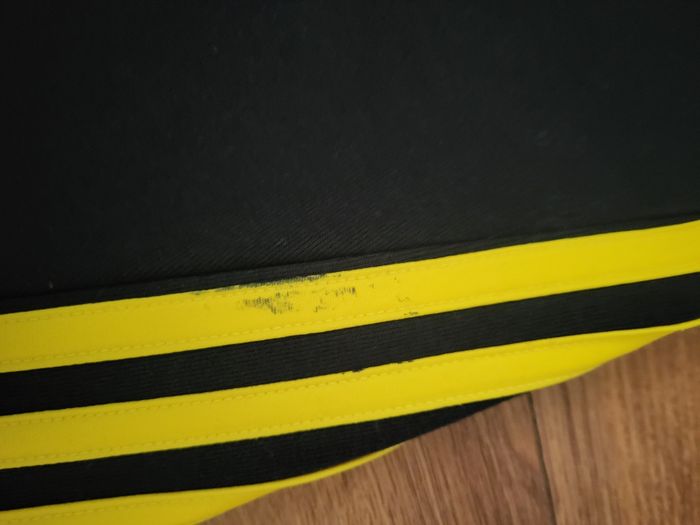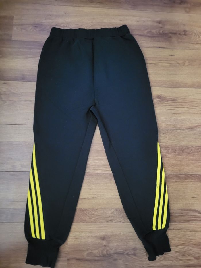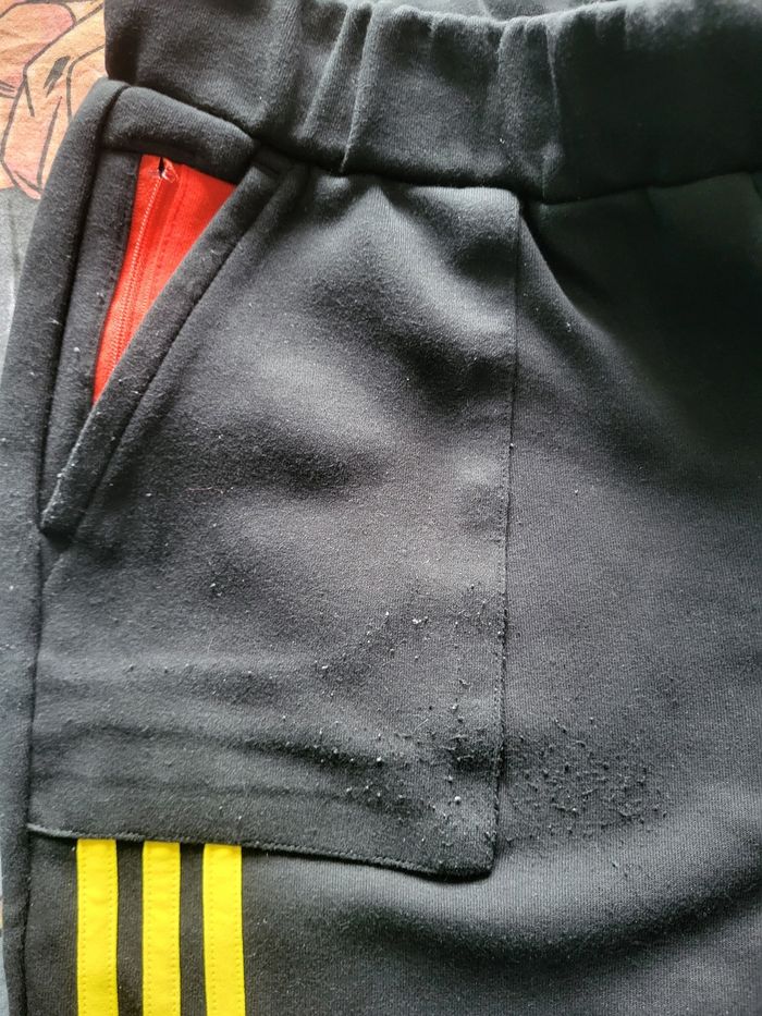 Bas de jogging adidas Taille 15/16ans Defaut : De legeres bouloches sur une poches et de petites traces noires sur les bandes jaunes mais rien de mechant voir photos sinon le jogging est en parfait etat est super sympa de ce fait je met bon etat