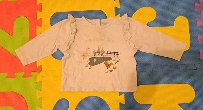 T-shirt manches longues blanc animaux, bout'chou, taille 12 mois (74 cm) - photo numéro 1