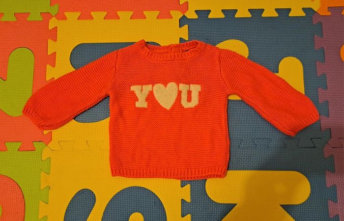 Pull maille orange corail, kiabi, taille 12 mois (73/76 cm) - photo numéro 1