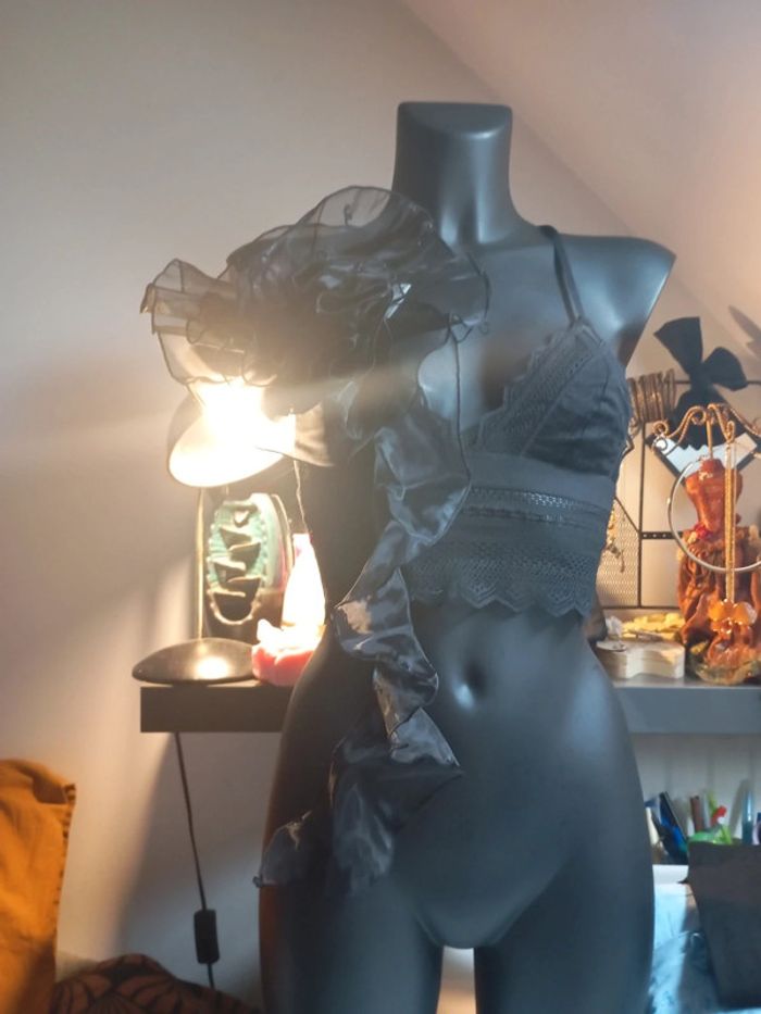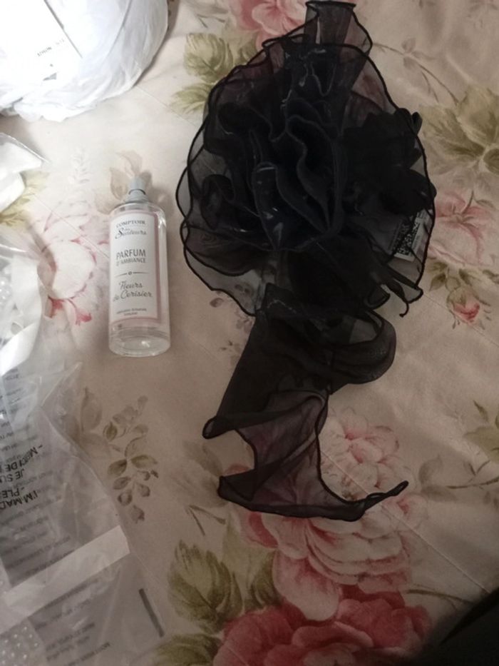 Fleur noir en satin Neuf Broche et collier