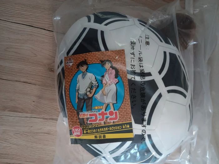 Peluche détective Conan 30 cm bandai !!! Attention en voulant bouger conan pour prendre la photo une couture s est defaite au niveau de la tete la peluche et encore maintenu par les deux mains!!!