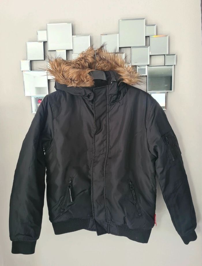 Doudoune à capuche Le Temps des Cerises Taille XXS enfant - 12 ans Fausse fourrure amovible par fermeture éclair sur la capuche Très bon état (il manque simplement un scratch décoratif sur la manche voir photo) #virginie222012ansgarcon #manteau #doudoune #parka #veste #capuche #letempsdescerises #hiver
