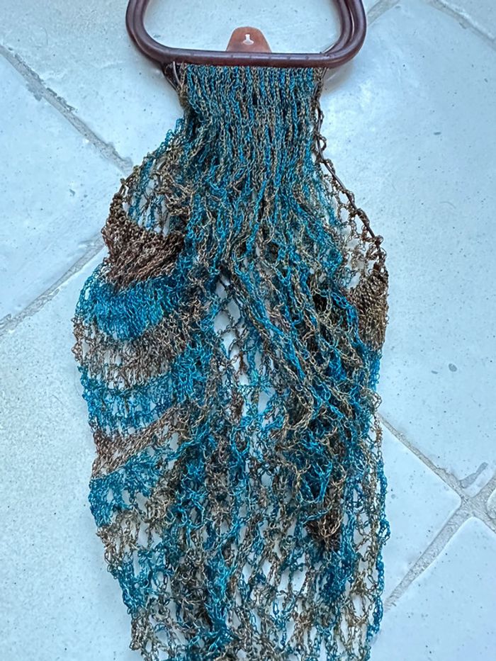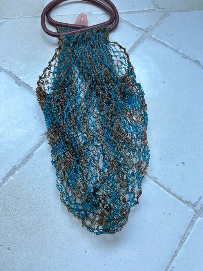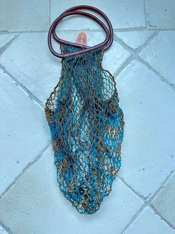 Véritable filet vintage des années 1970, bleu et marron - photo numéro 2
