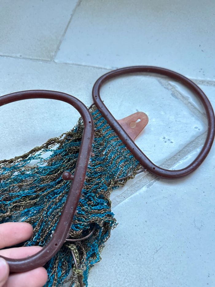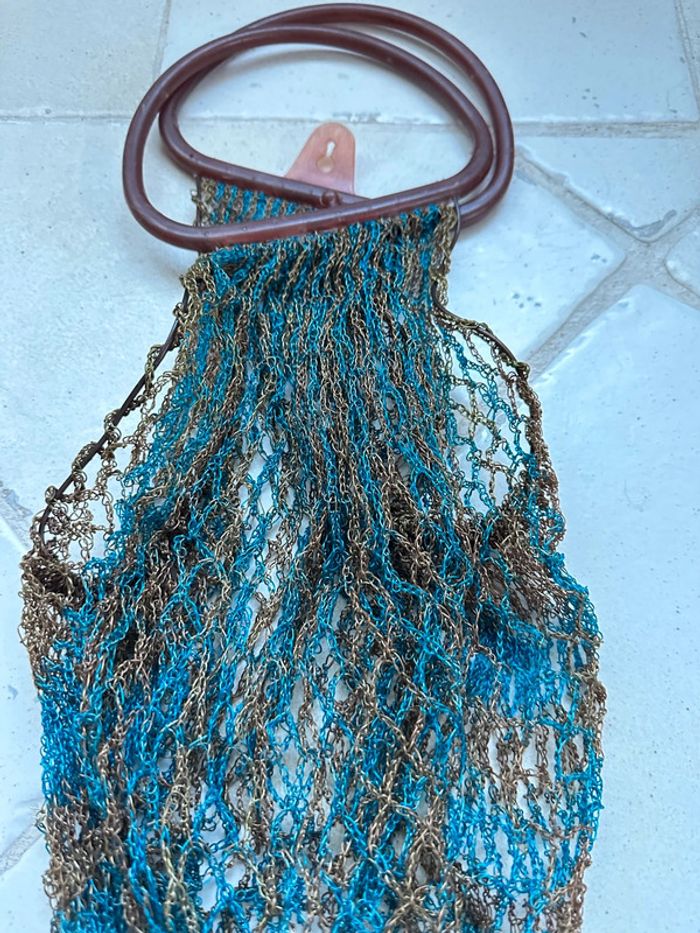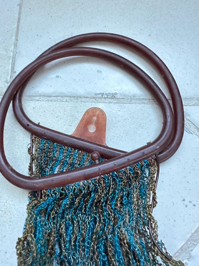 Véritable filet vintage des années 1970, bleu et marron - photo numéro 8