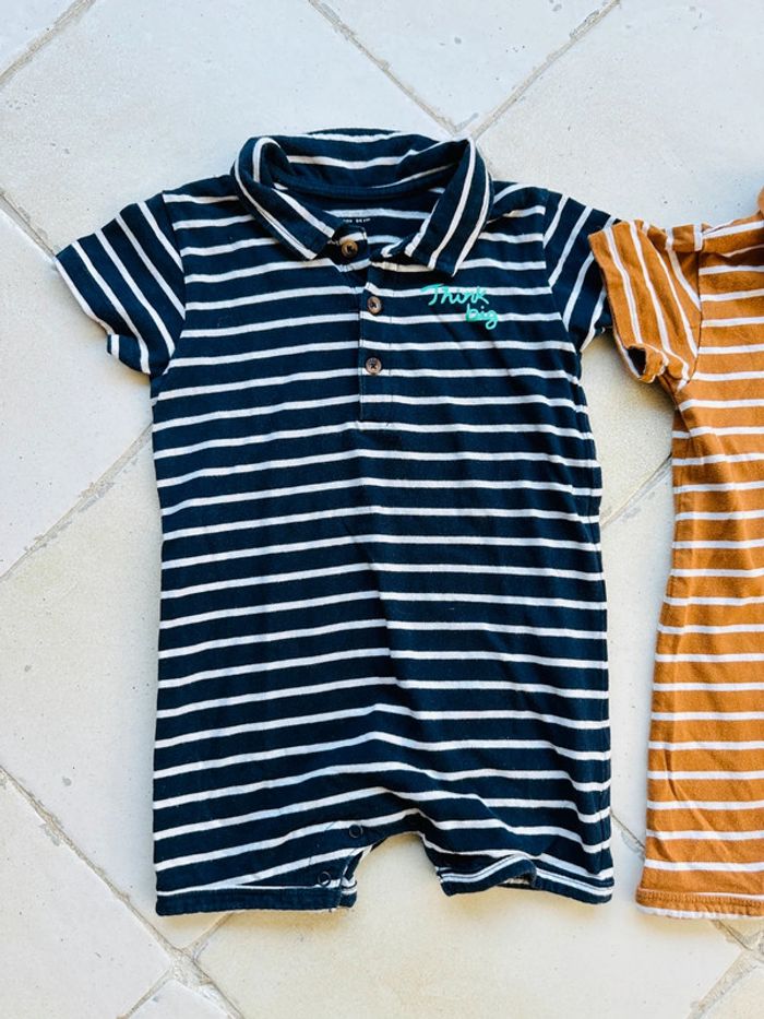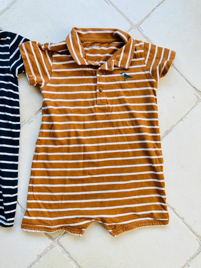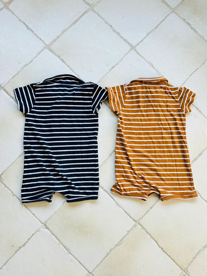 Lot de 2 combishorts taille 3 ans en coton 1 bleu marine à rayures Marque Vertbaudet 1 marron / orange à rayures marque Vertbaudet Très bon état