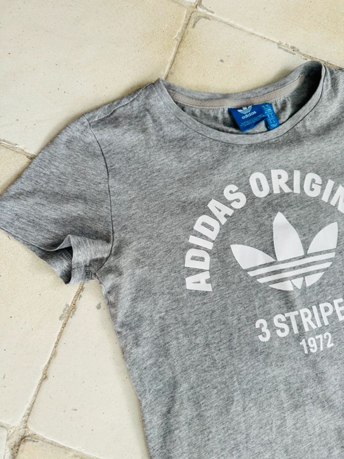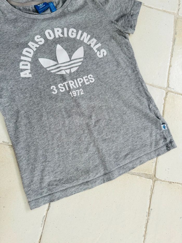 T-shirt gris Marque Adidas 3 Stripes 1972 Taille 34 Très bon état 100% coton