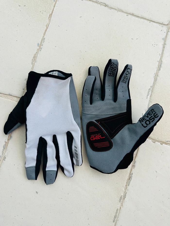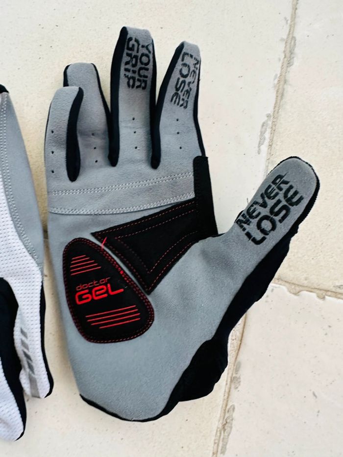 Gants blancs et noir Taille XL Marque : Never lose your grip Avec Doctor gel sur la pomme de la main Portés 1 fois Très bon état
