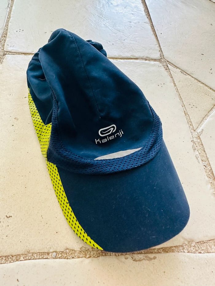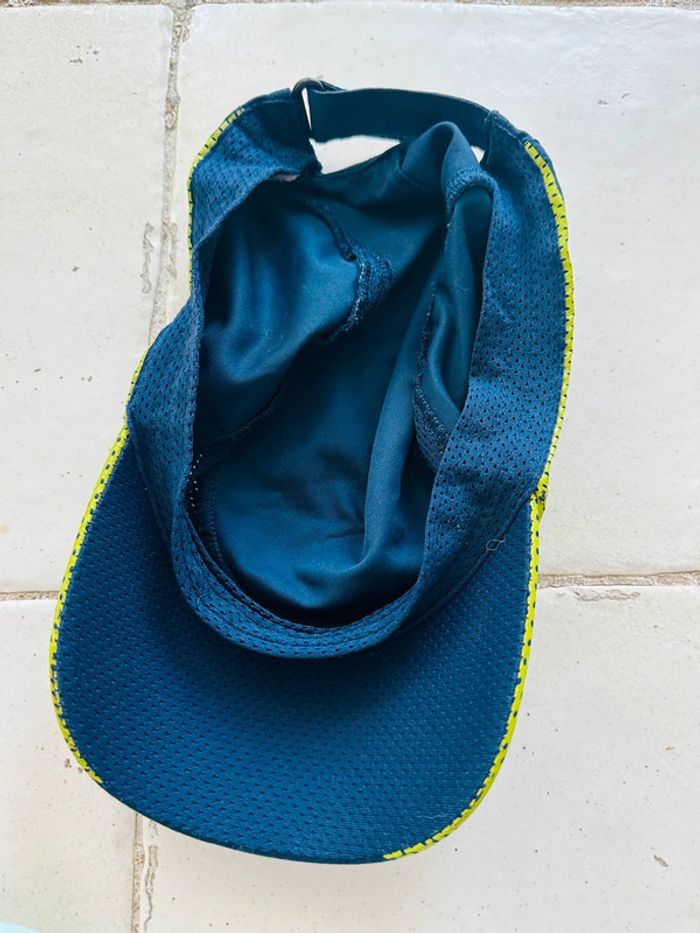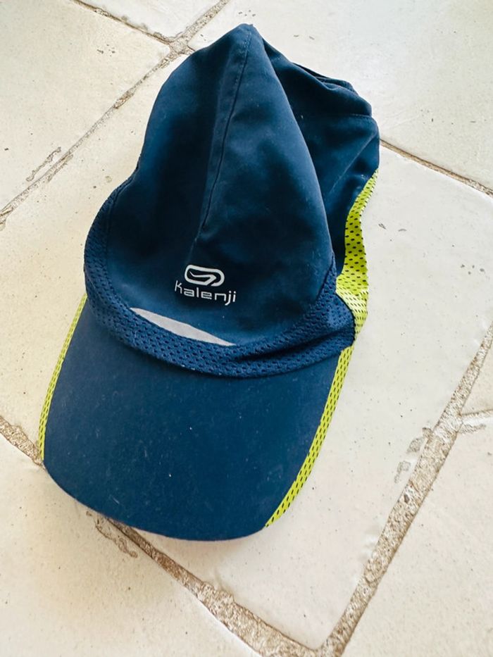 Casquette respirante Marque Kalenji Bleue marine et jaune / vert Réglable Très bon état