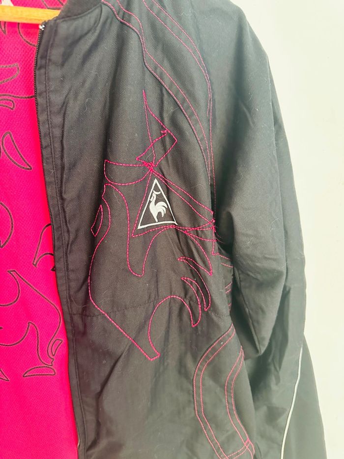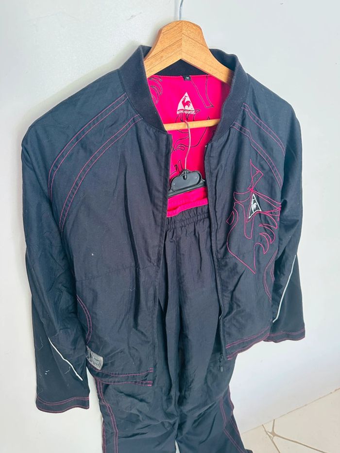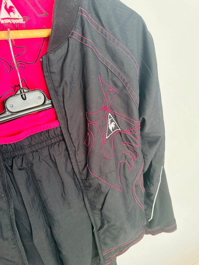 Ensemble femme rose et noir Veste et pantalon de jogging Marque : Le Coq Sportif Taille M Matière chaude 100% polyamide Très bon état