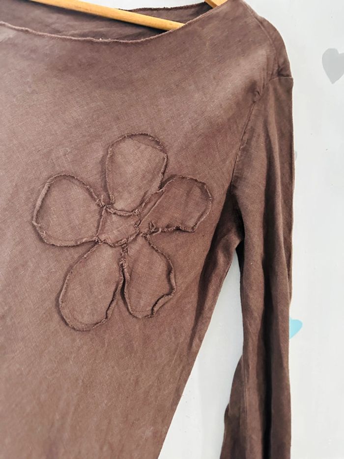 Robe marron asymétrique Motif grosses fleurs Taille 38/40 Très bon état