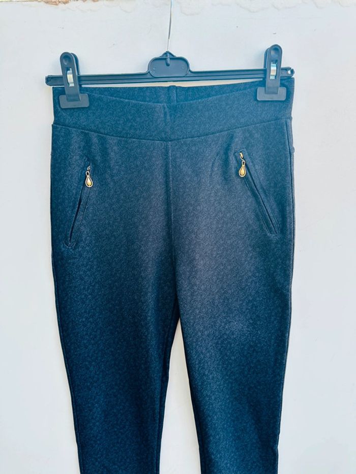 Pantalon noir / gris Marque E&D Matière chaude Taille 46 mais correspond plutôt à un 42 Très bon état 65% viscose, 25% polyester, 10% elasthane
