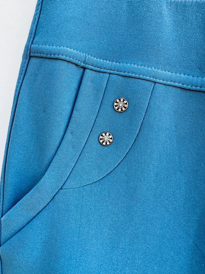 Pantalon bleu clair Matière chaude Taille 2XL / 3 XL mais correspond plutôt à un 38/40 Très bon état 85% polyamide et 15% elasthane