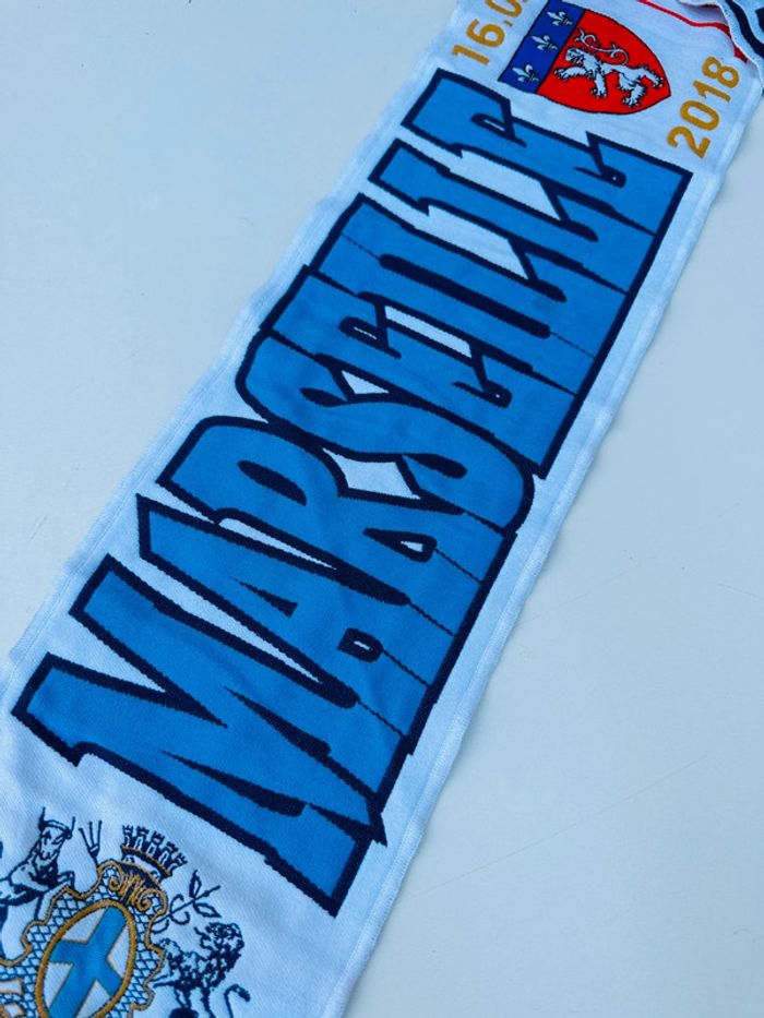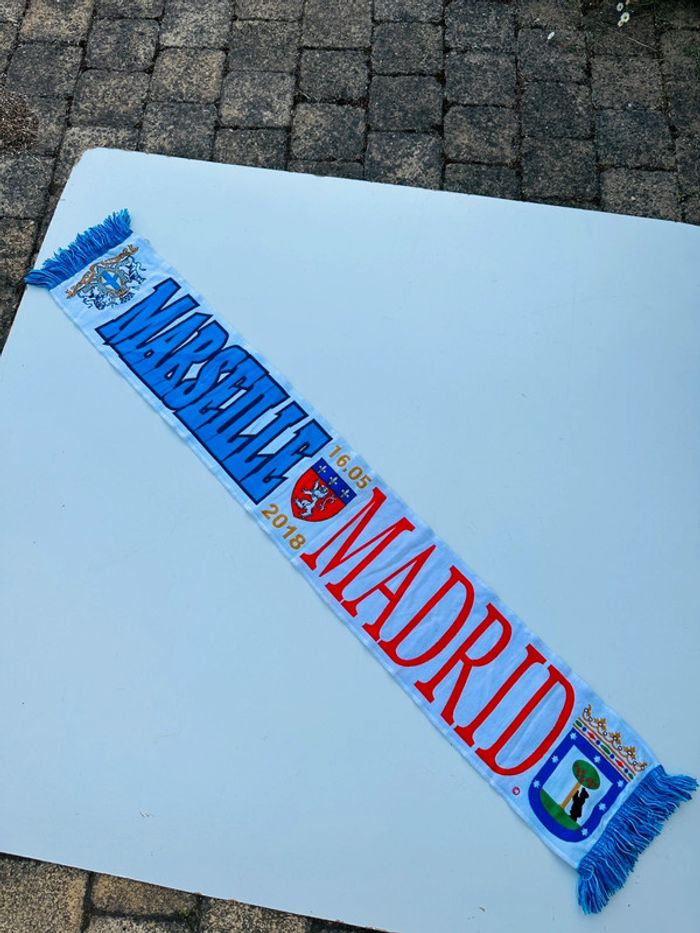 Écharpe de foot Marseille / Madrid 16/05/2018 Avec franges Longueur totale avec franges : 134 cm Très bon état