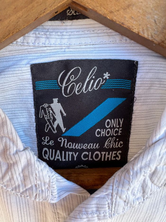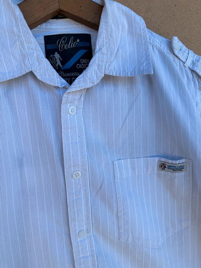 Chemise blanche à rayures grises Marque celio Taille M 100% coton Inscription dans le dos