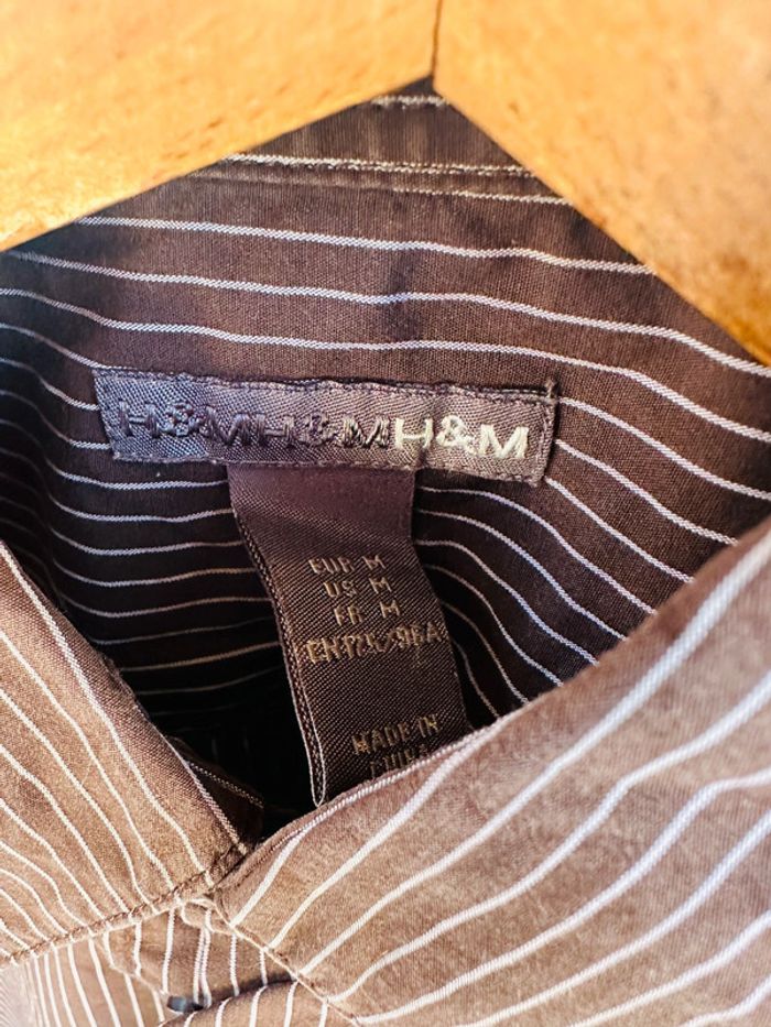 Chemise marron manches longues à rayures blanches Marque H&M Taille M Très bon état 100% coton