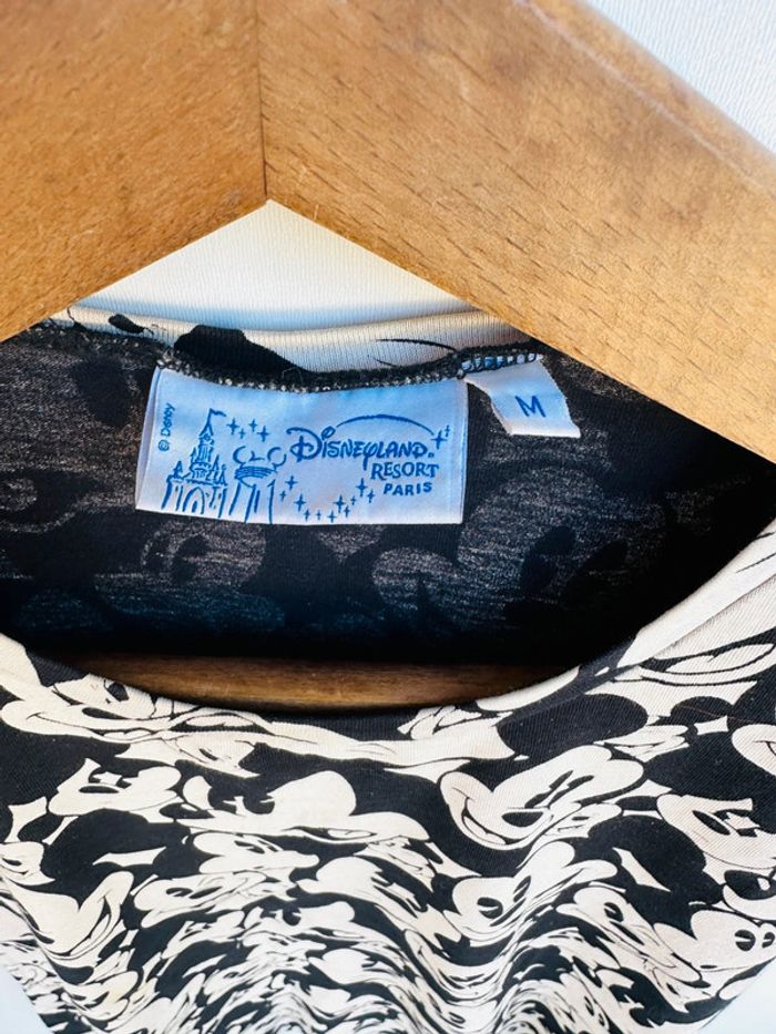 T-shirt motif Mickey Mouse noir et blanc Marque Disneyland Resort Paris Taille M 100% coton En très bon état Dimensions : Épaule à épaule : 33 cm Aisselles à aisselles : 40 cm Hauteur : 58 çm