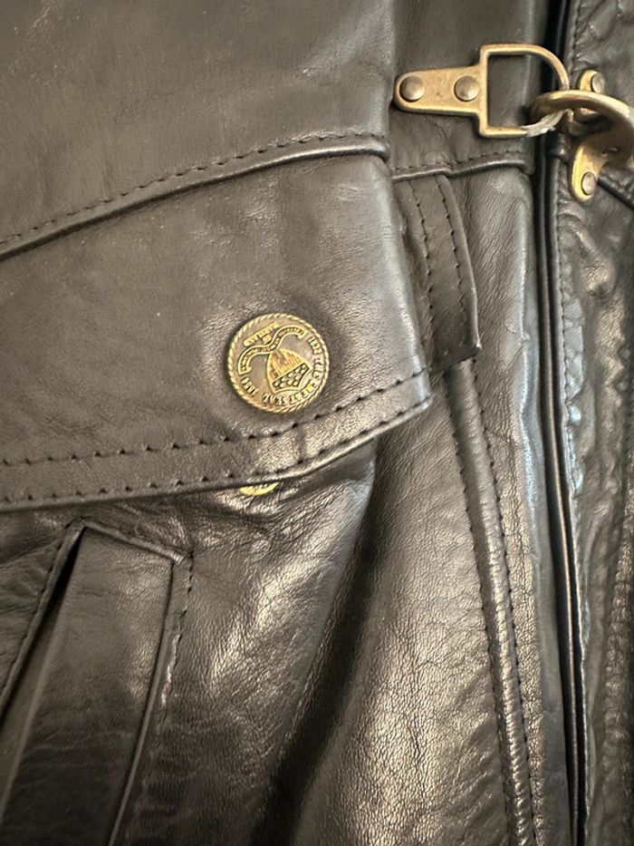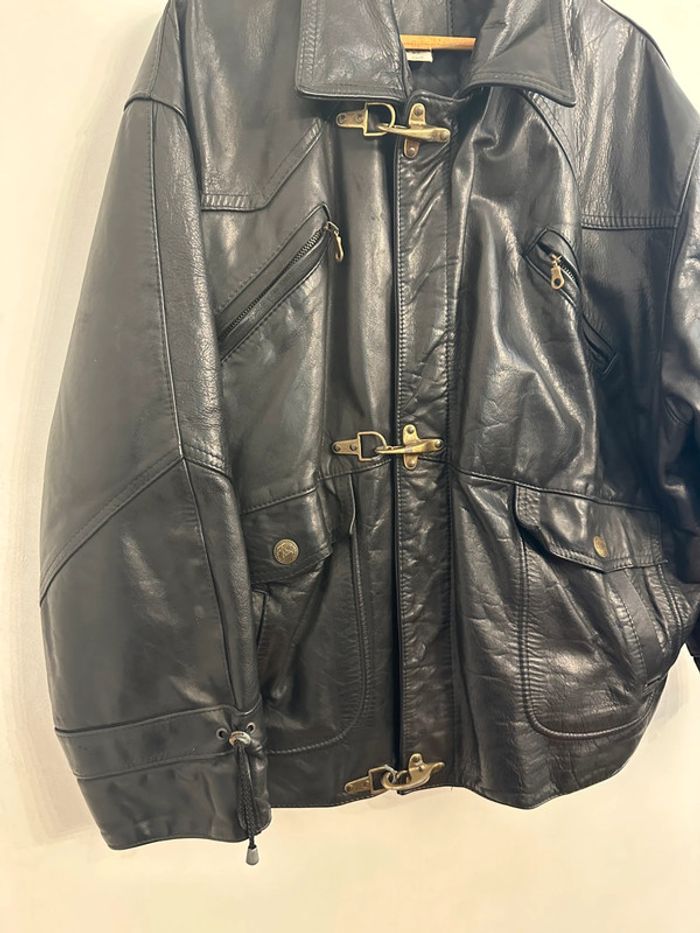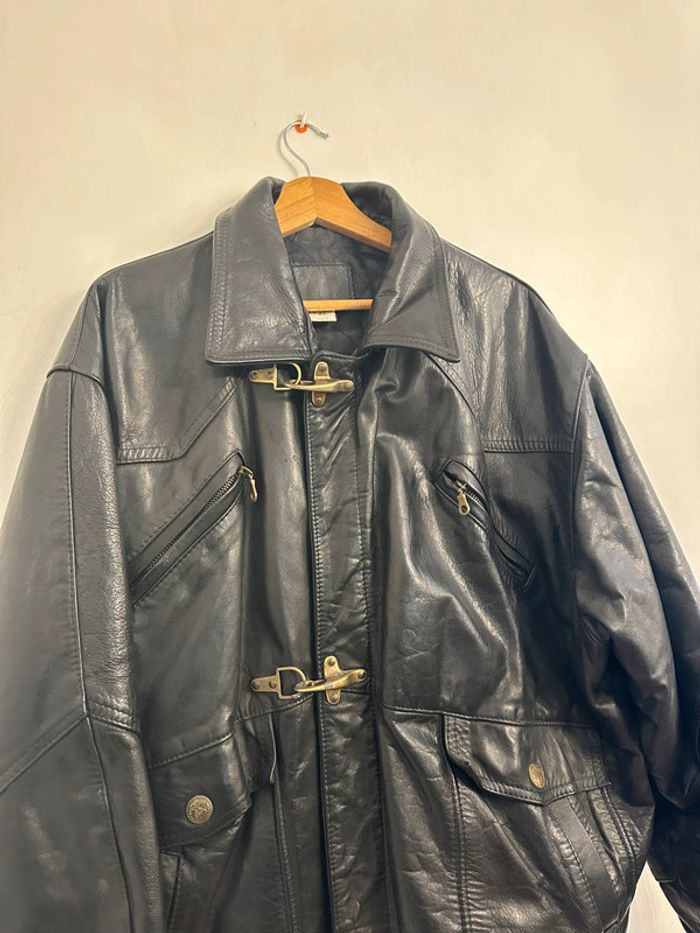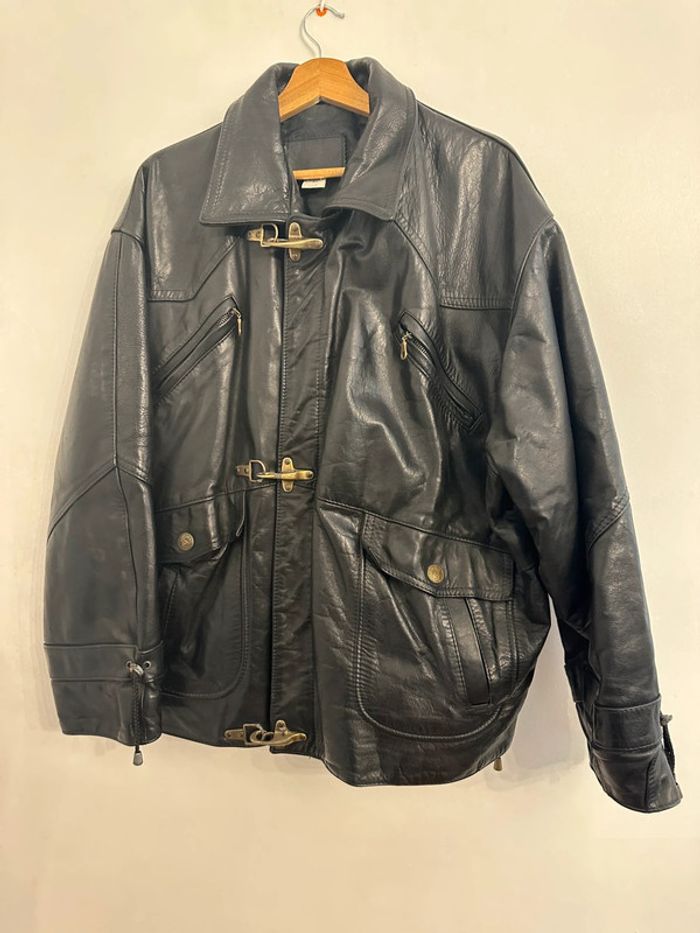 Blouson noir en cuir Assez lourd Taille XL Quincaillerie couleur doré Très bon état