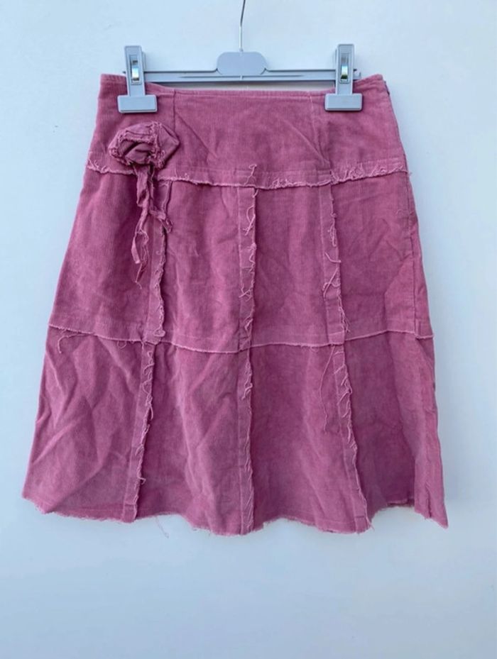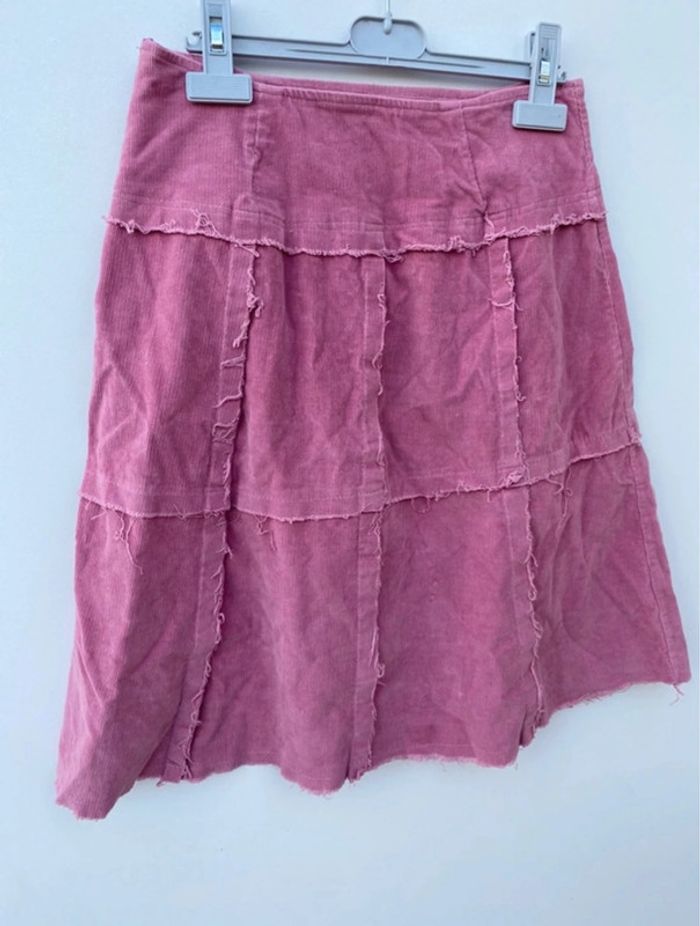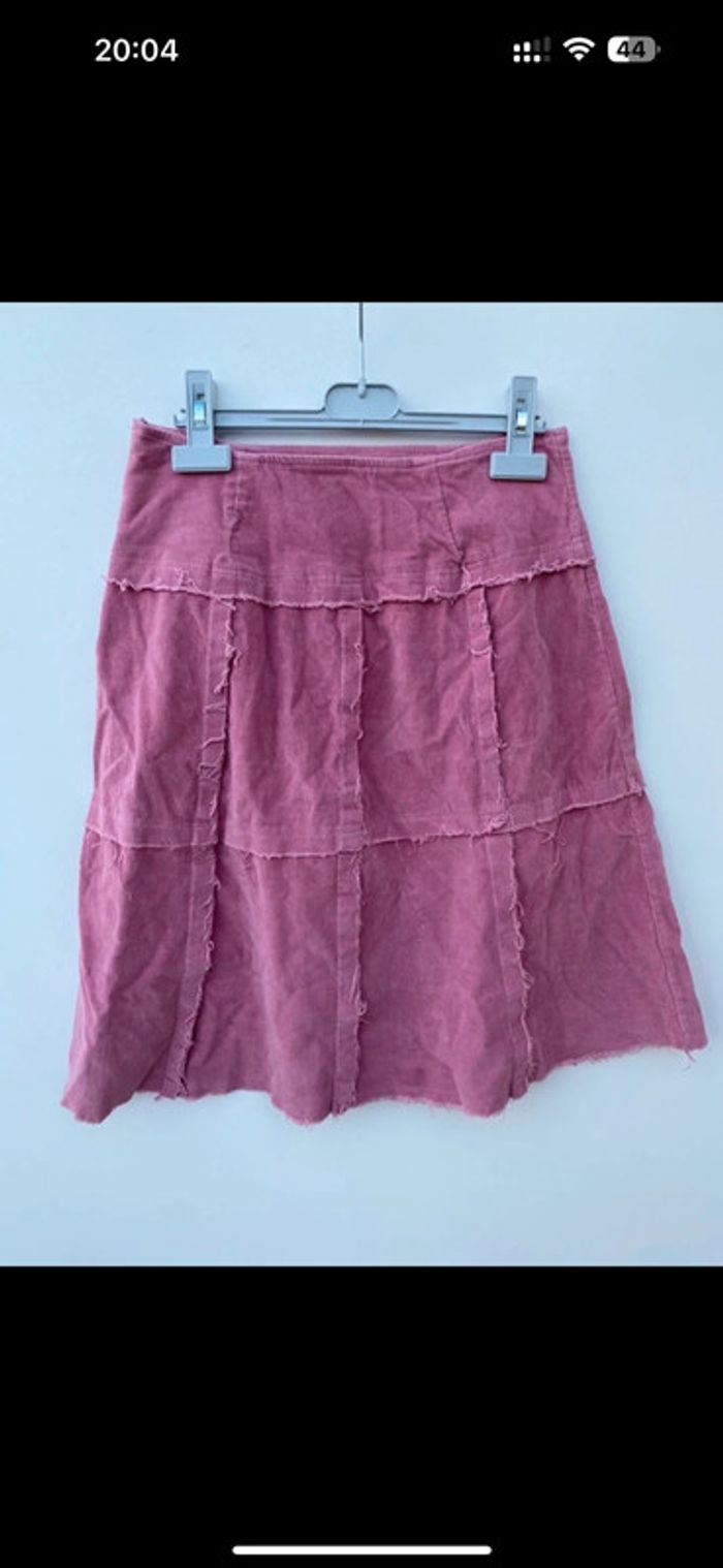 Jupe trapèze en velours rose Fermeture éclair dans le dos Taille 38 Très bon état 95% coton et 5% elasthane
