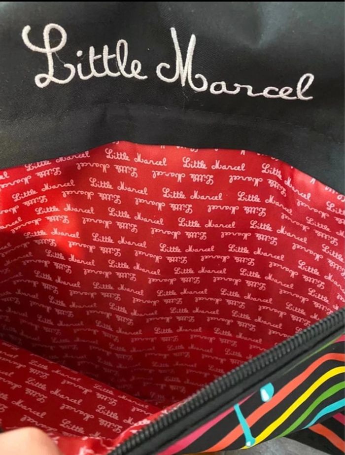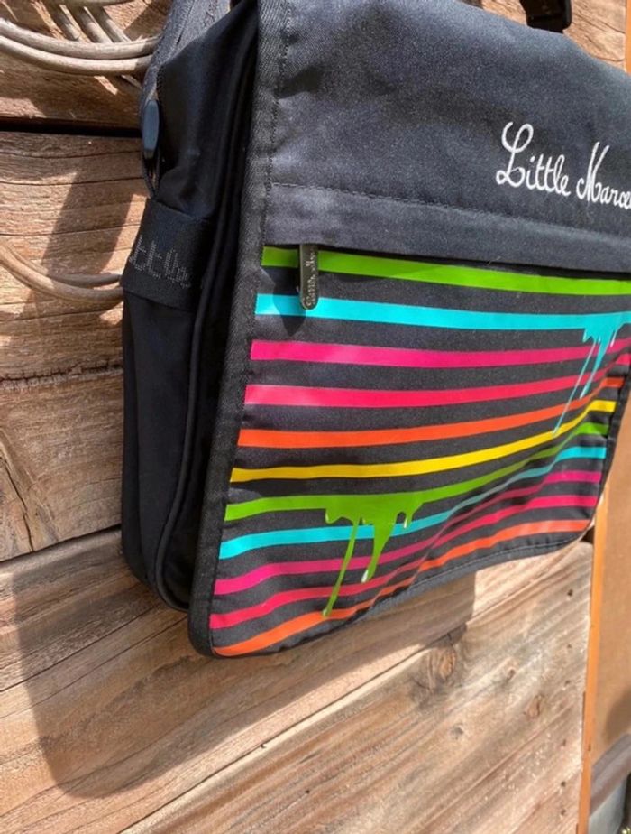 Sacoche multicolore Little Marcel en très bon état sur une bande, le coureur est un peut partie ( voir photos ) l’intérieur est impeccable