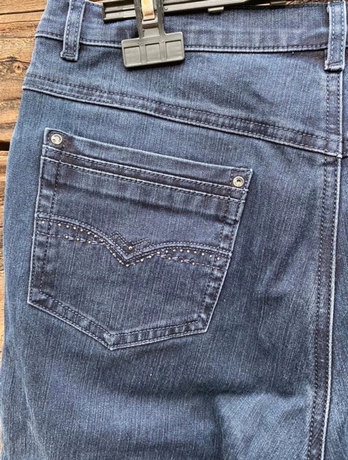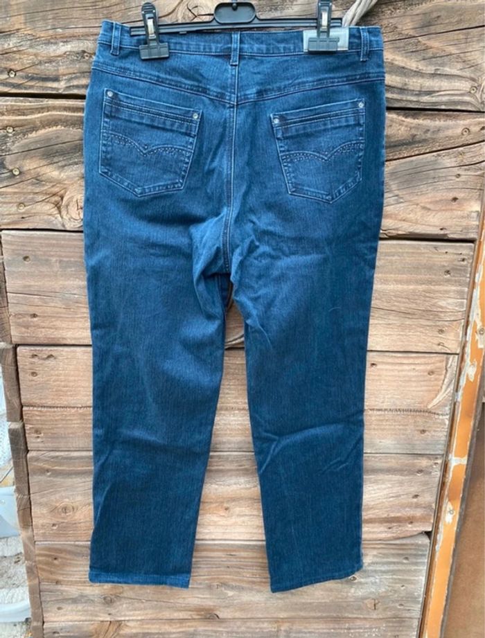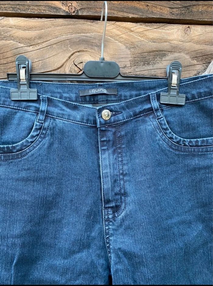 Jean matière un peut extensible 76% coton 22% polyester 2% elasthane taille 44 couleur bleu jean marque i.quing