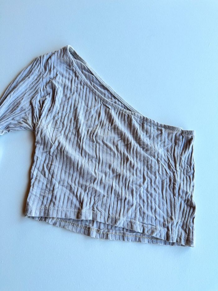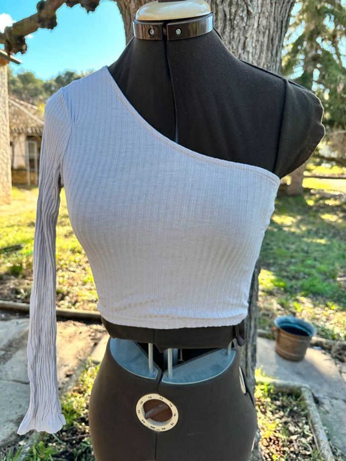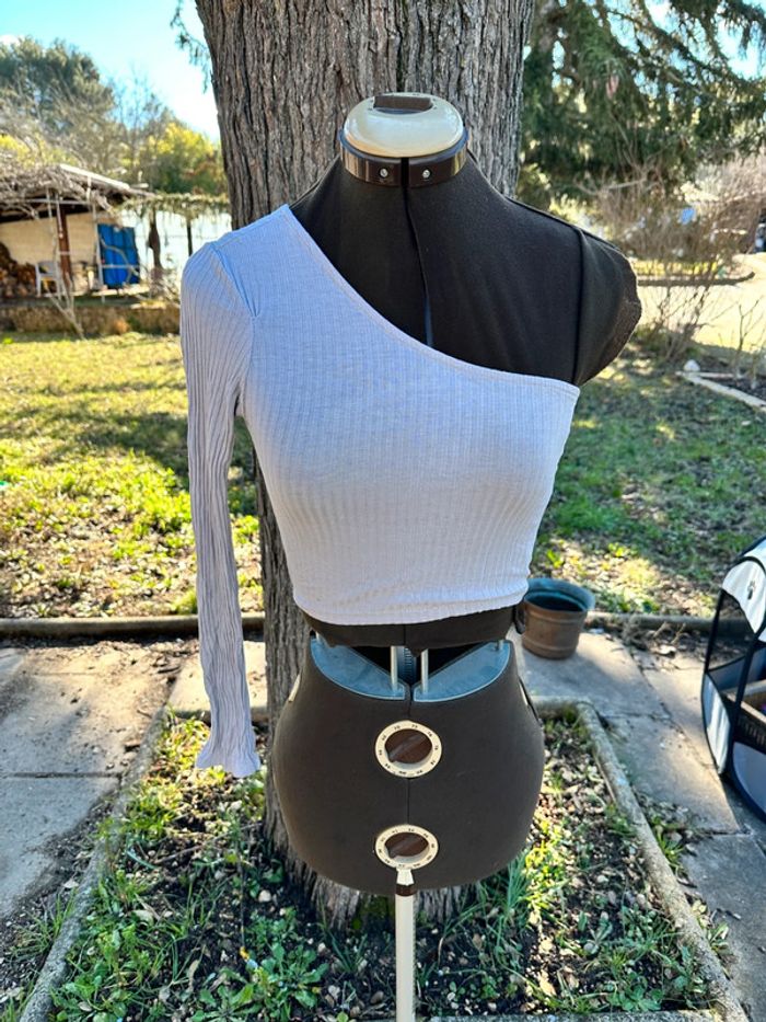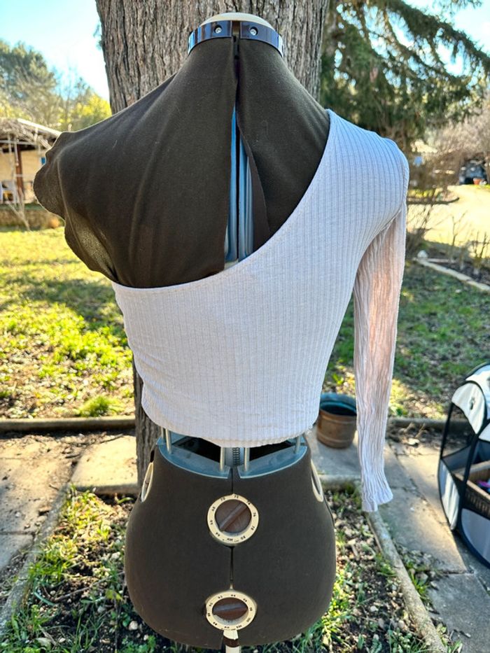 Petit haut 1 manche longue d’un côté et sans manche de l’autre Très bon état Taille 34-36