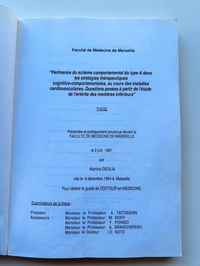 Livre - « thèse pour le doctorat de médecine » 1987 Bon état général