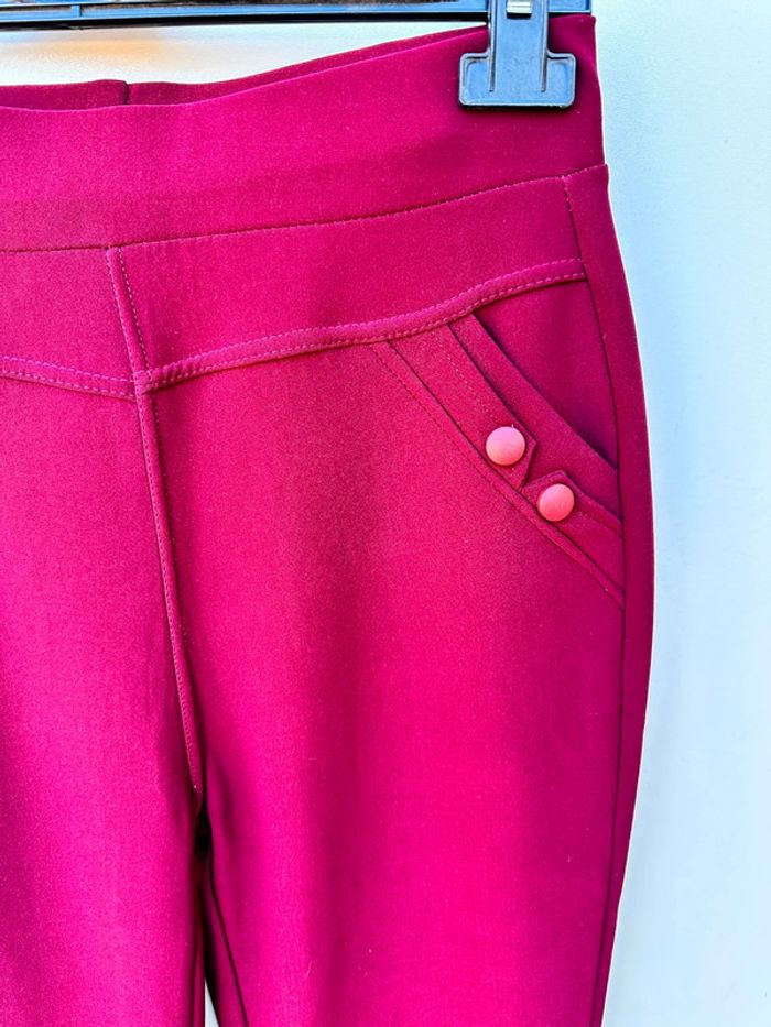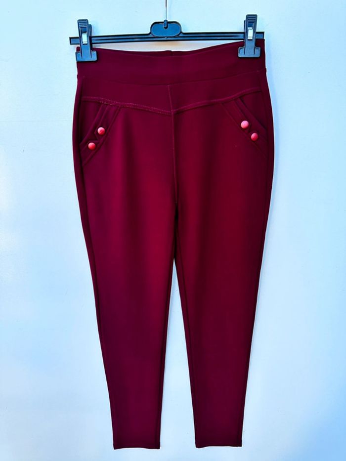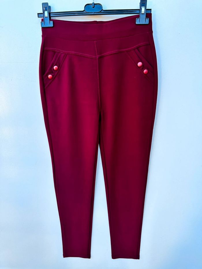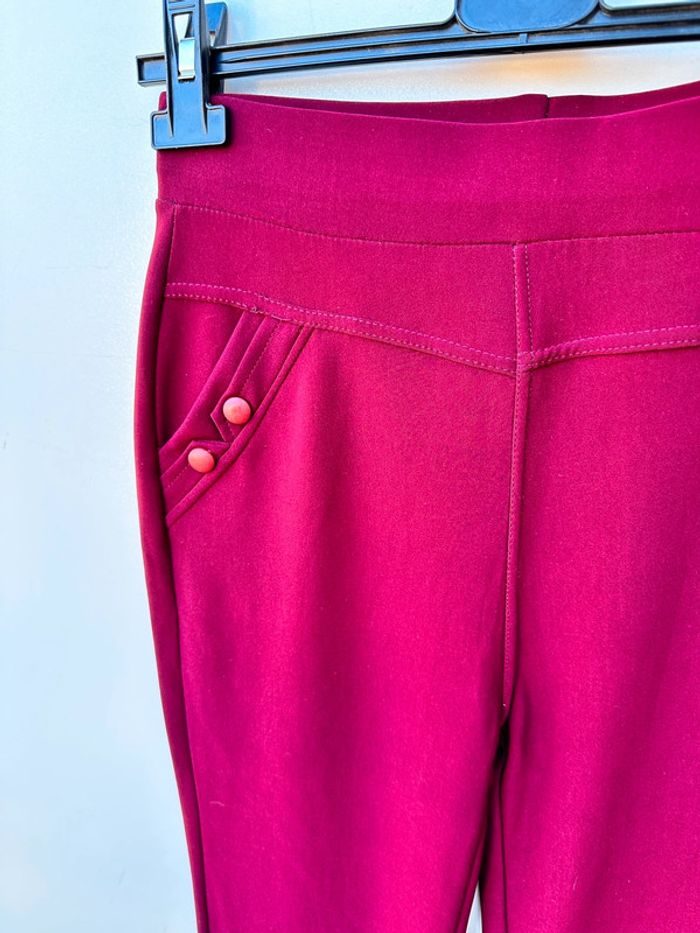 Pantalon Bordeau Petits boutons au niveau des poches Taille M/L > 38/40 Élastiqué à la taille Très bon état 85 % polyamide, 15 % élasthane