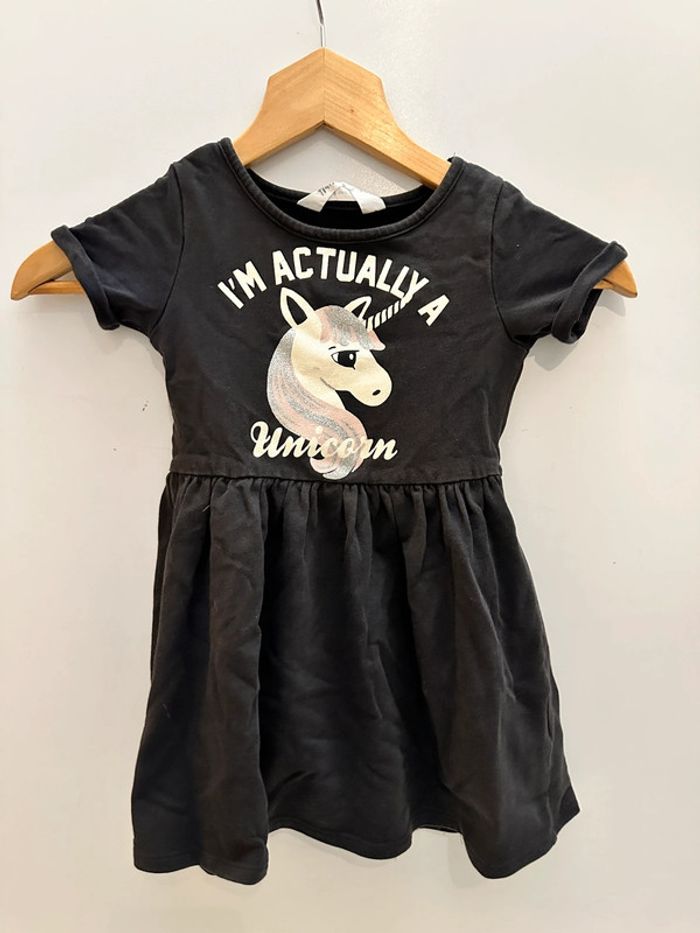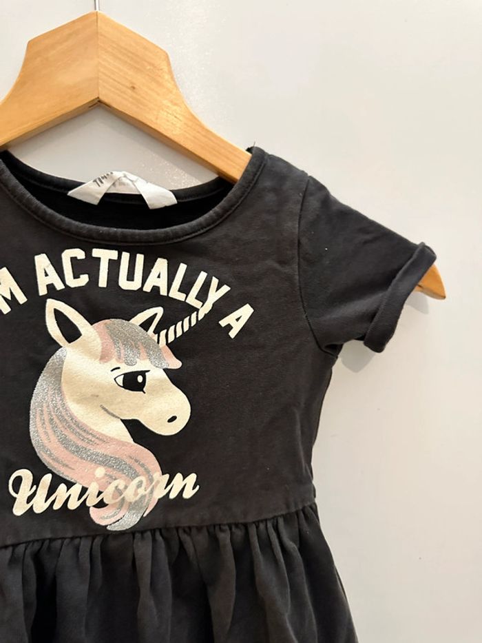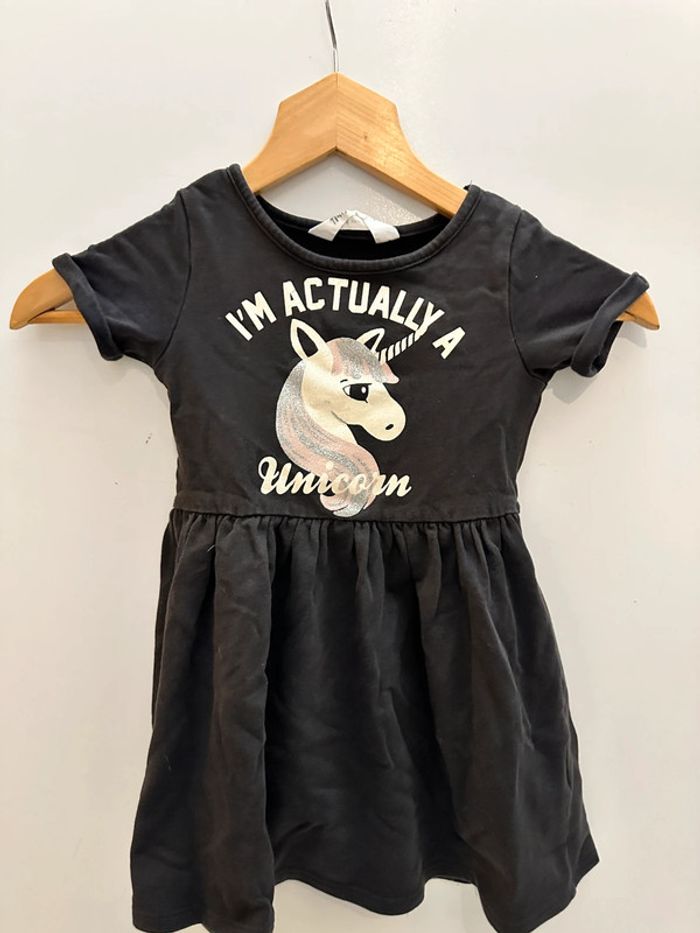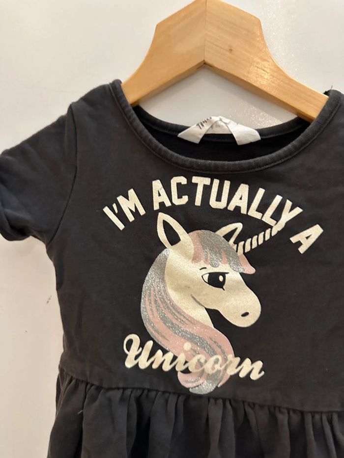 Robe grise, sans manches Motif licorne Marque H&M Taille 2 ans 100 % coton Très bon état Assez épaisse