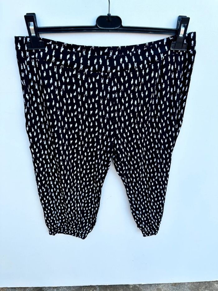 Pantacourt noir et blanc Élastiqué à la taille Resserré au bas des jambes Marque Blancheporte Taille 42/44 ~~~ 95% viscose et 5% elasthane Très bon état