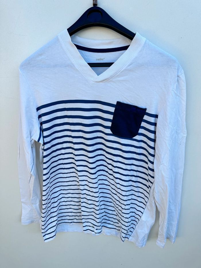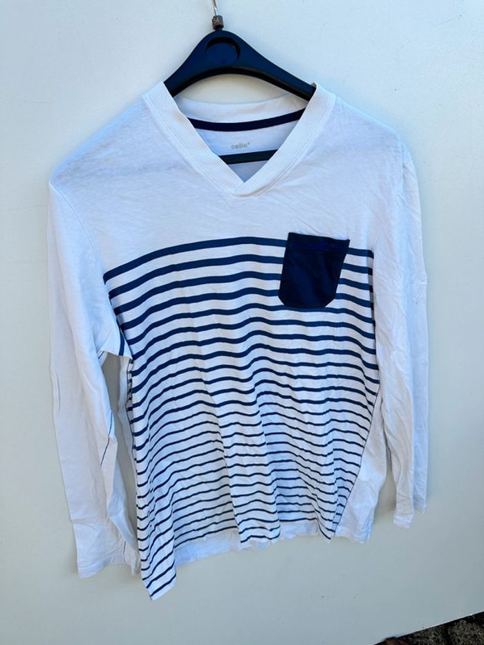 T-shirt manches longues Avec petite poche devant gauche 100% coton Taille L Marque Celio Très bon état