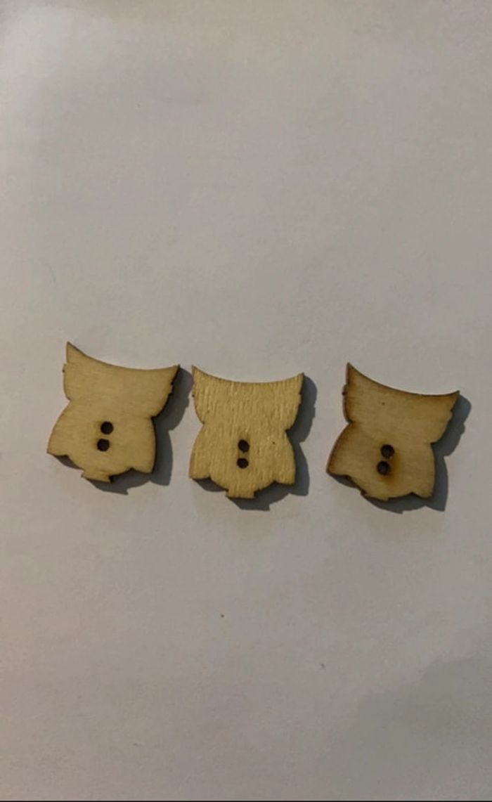 Lot de 3 boutons en forme d’Hiboux 2 petits trous au centre et un trou triangulaire au niveau du nez