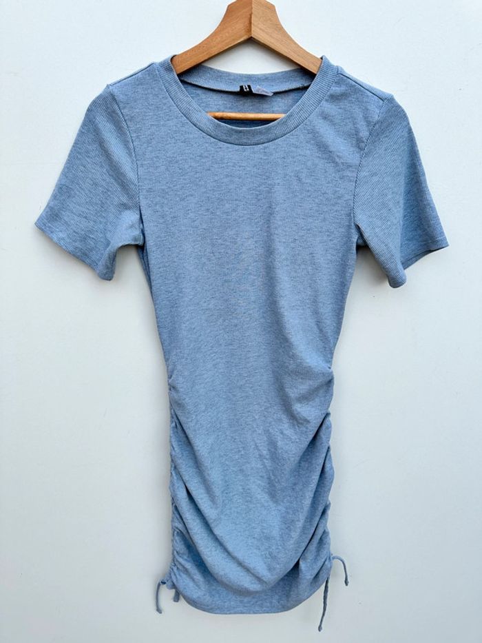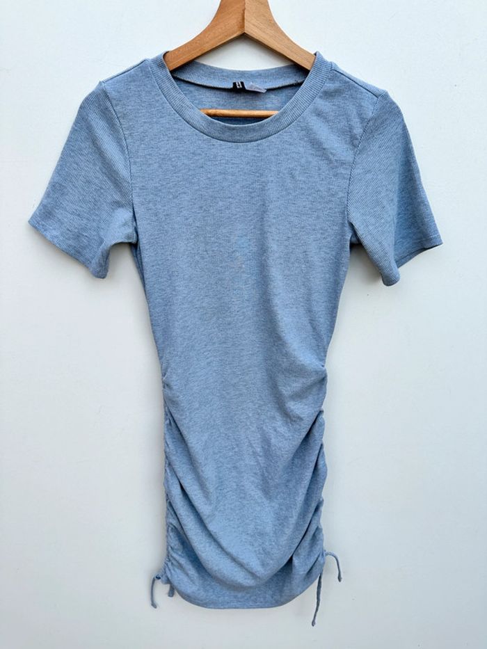 Robe grise Froncée sur les côtés en bas Taille S Marque H&MDivided |~~ 96% polyester / 4% elasthane Col rond Petites manches Matière côtelée