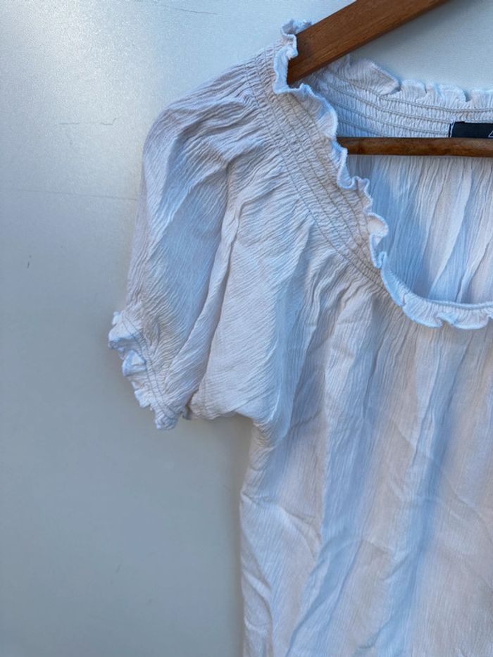 T-shirt blanc Manches courtes Élastiqué Taille 44 Marque Zeeman 100% viscose