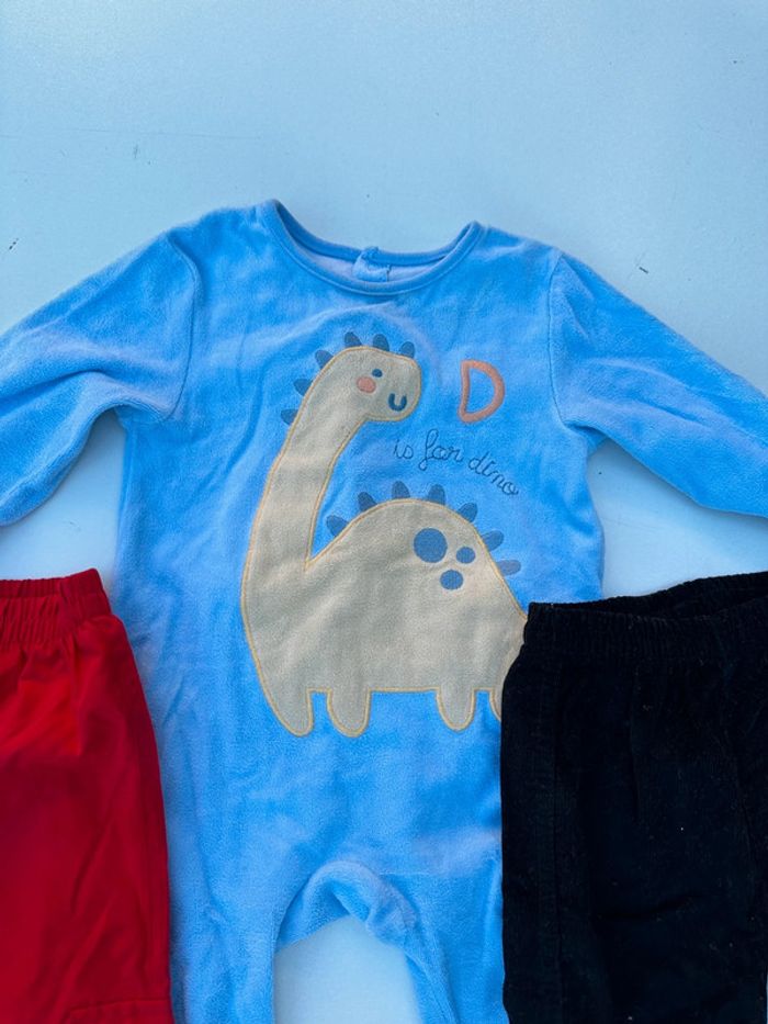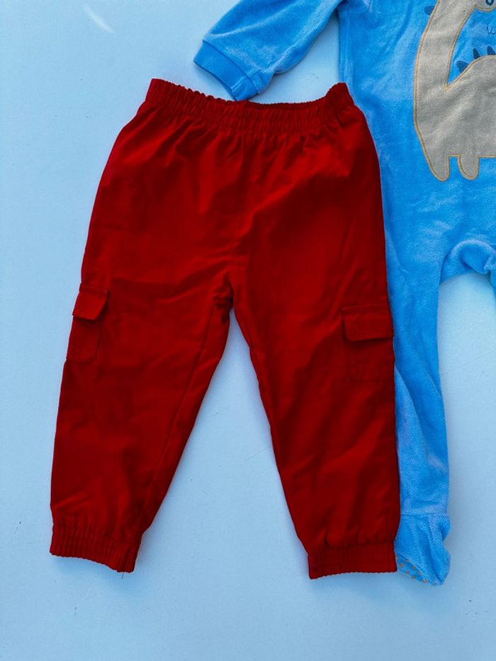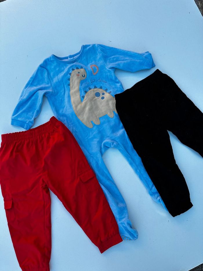 Un pyjama bleu marque Tex en éponge Et 2 pantalons ( rouge et noir ) Taille 23 mois Possibilité à l’unité