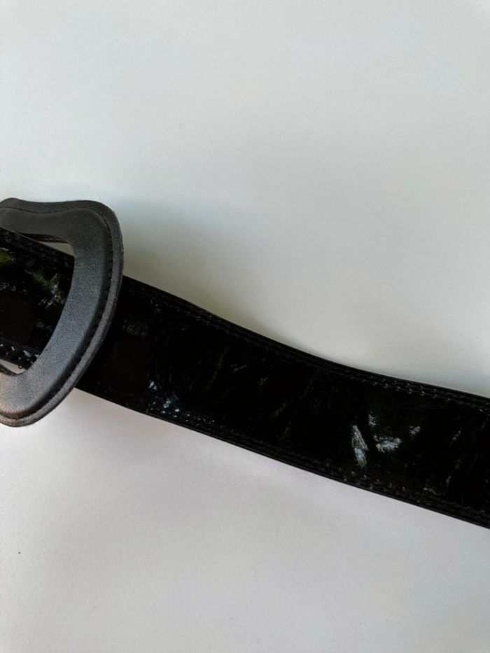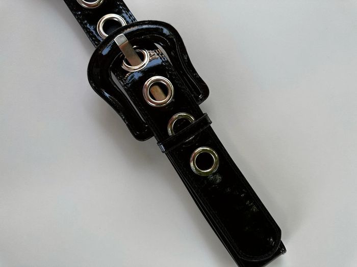 Ceinture noire Avec grosses boucles En synthétique Longueur totale : 109 cm