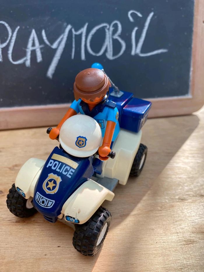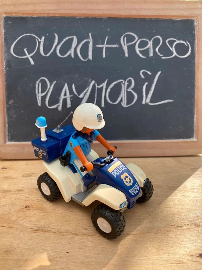 Quad + personnage playmobil de la police en bon état général