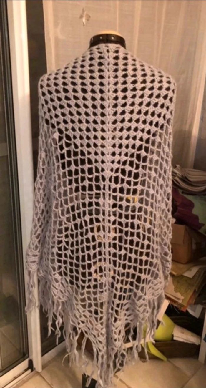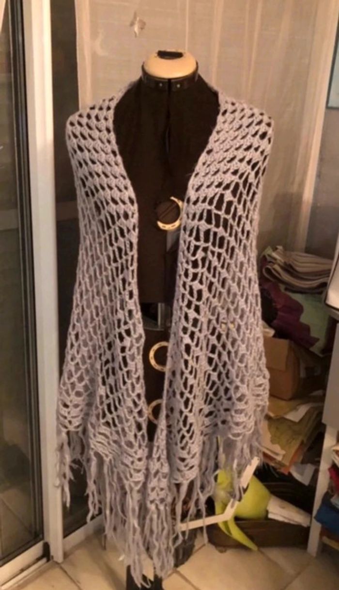 Châle gris tricoté à la main en très bon état 👌 envoi rapide et soigné