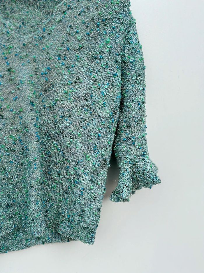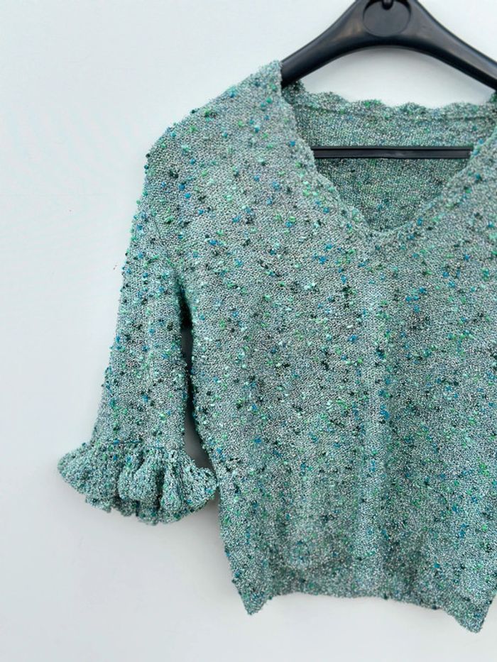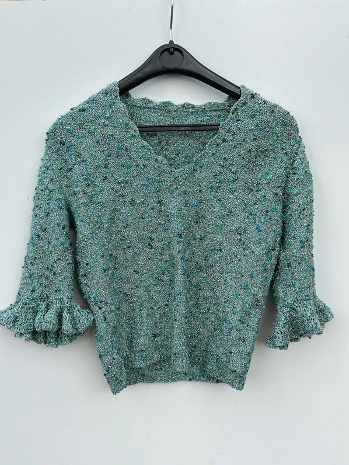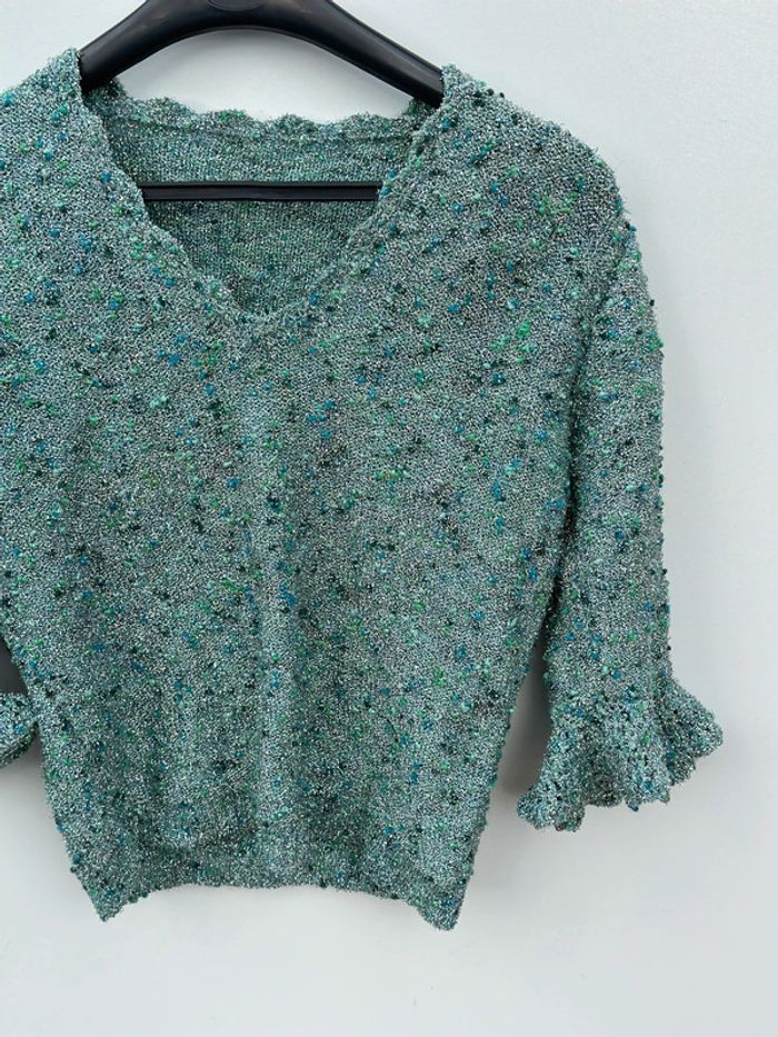 Petit haut Couleur : argenté et vert Manches mi-longues Col V Taille 36
