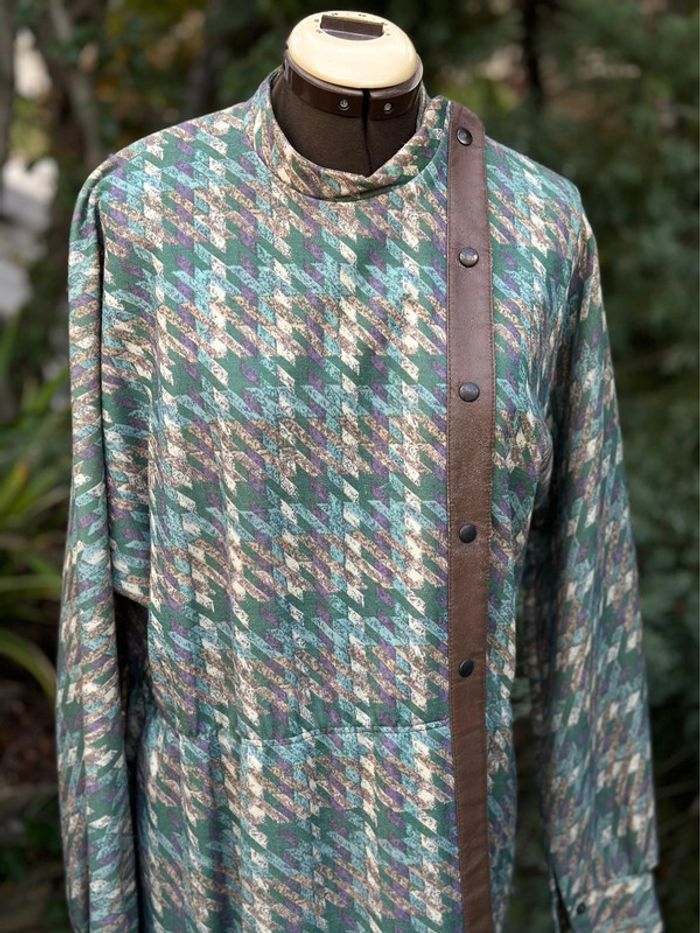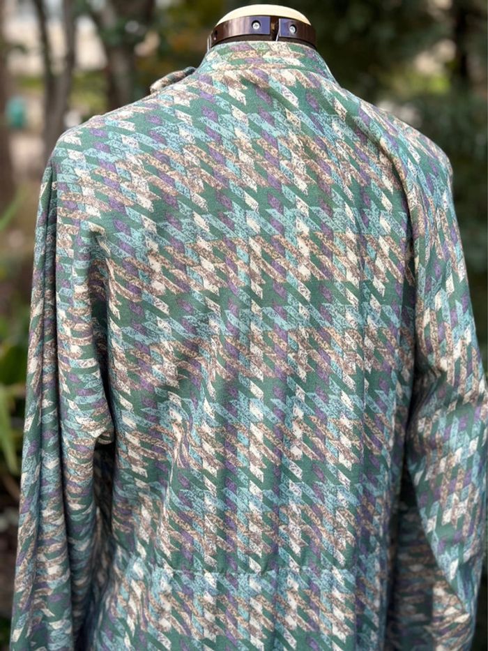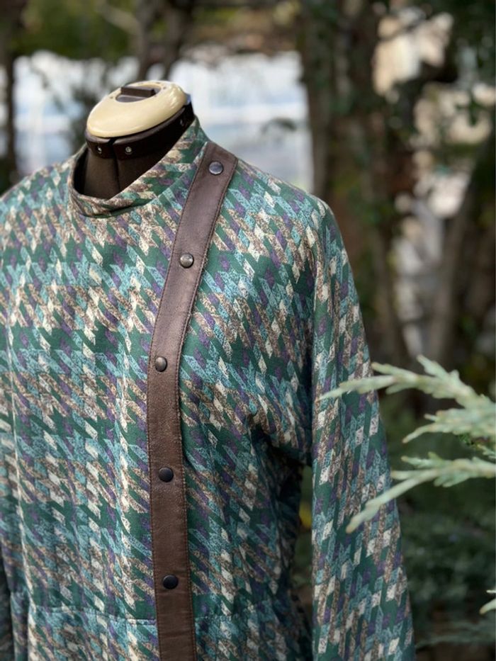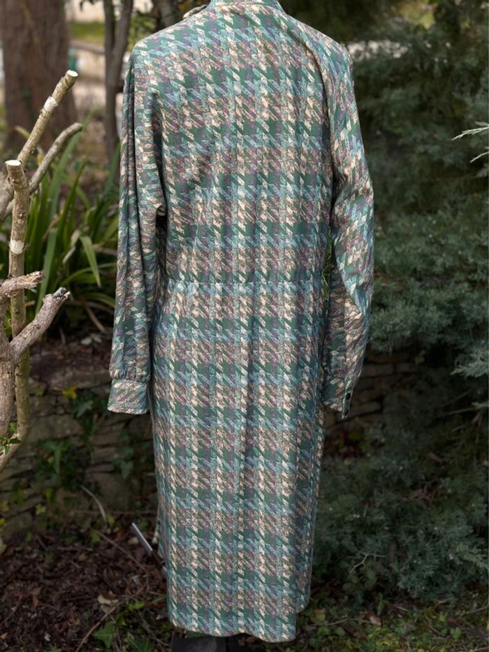 Robe d’hiver dans les tons verts Boutonnée par pression sur le côté gauche Sky légèrement usé Taille 50 Composition : 80% polyester 20% laine Ouverte sur le bas Très bon état