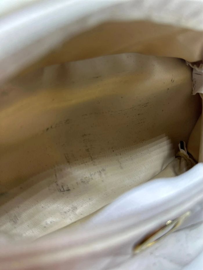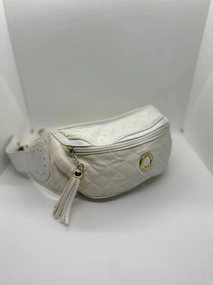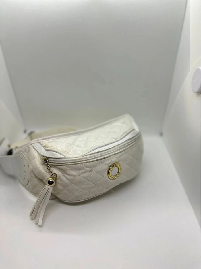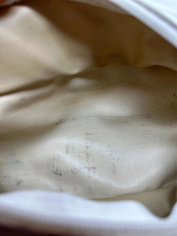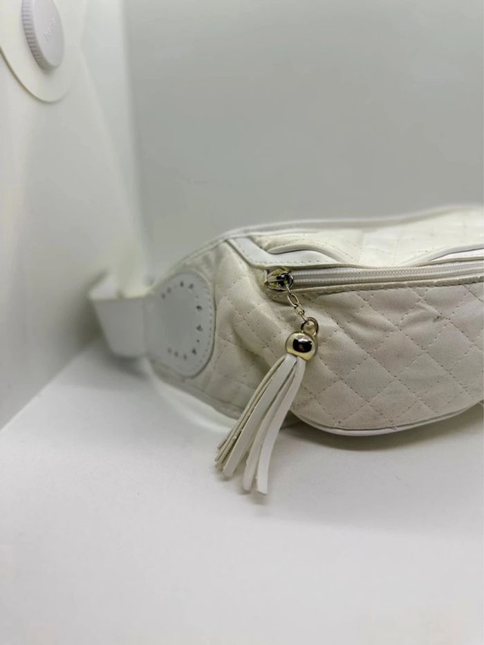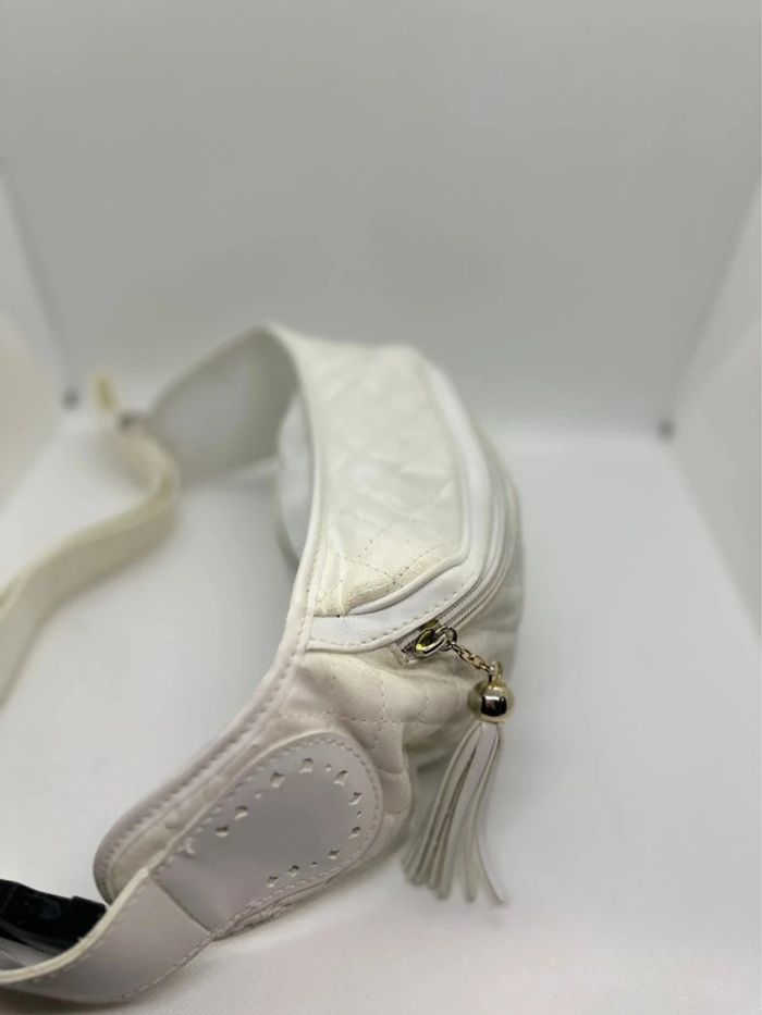 Sac banane blanc Une poche principale Une poche plaquée à l’arrière ( fermeture éclair ) Réglable à la taille Intérieur taches Quelques accros Mais il reste en bon état général