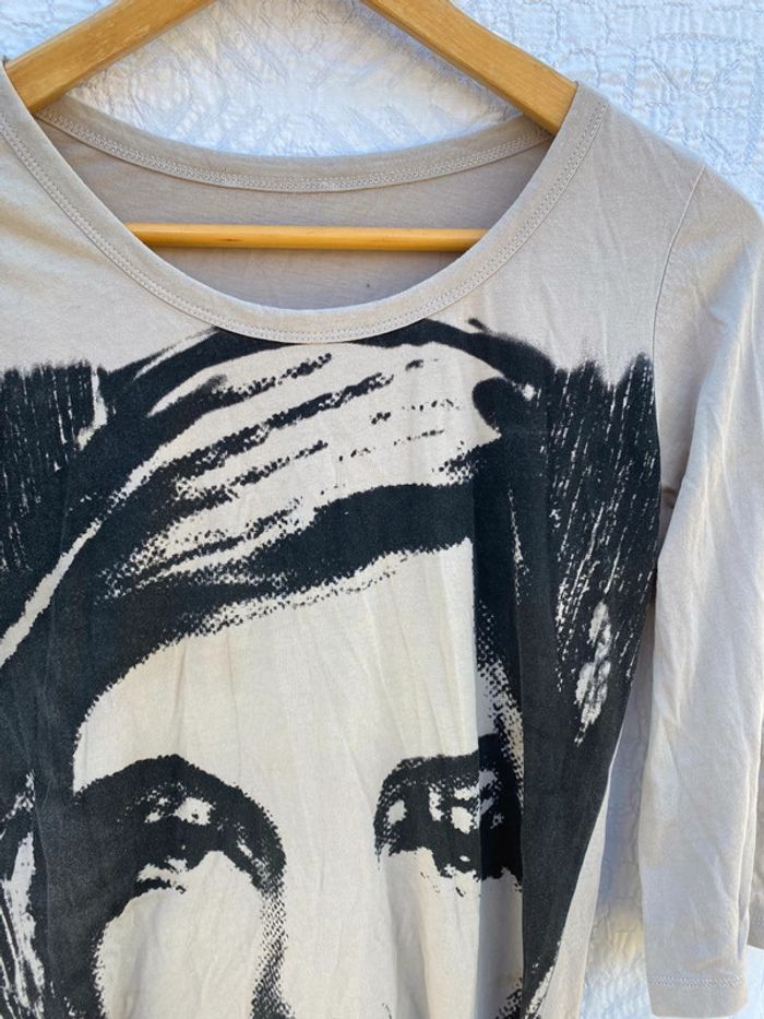Tee-shirt beige et noir taille 36 mais pas d’étiquette 100% coton #t36fpoulette