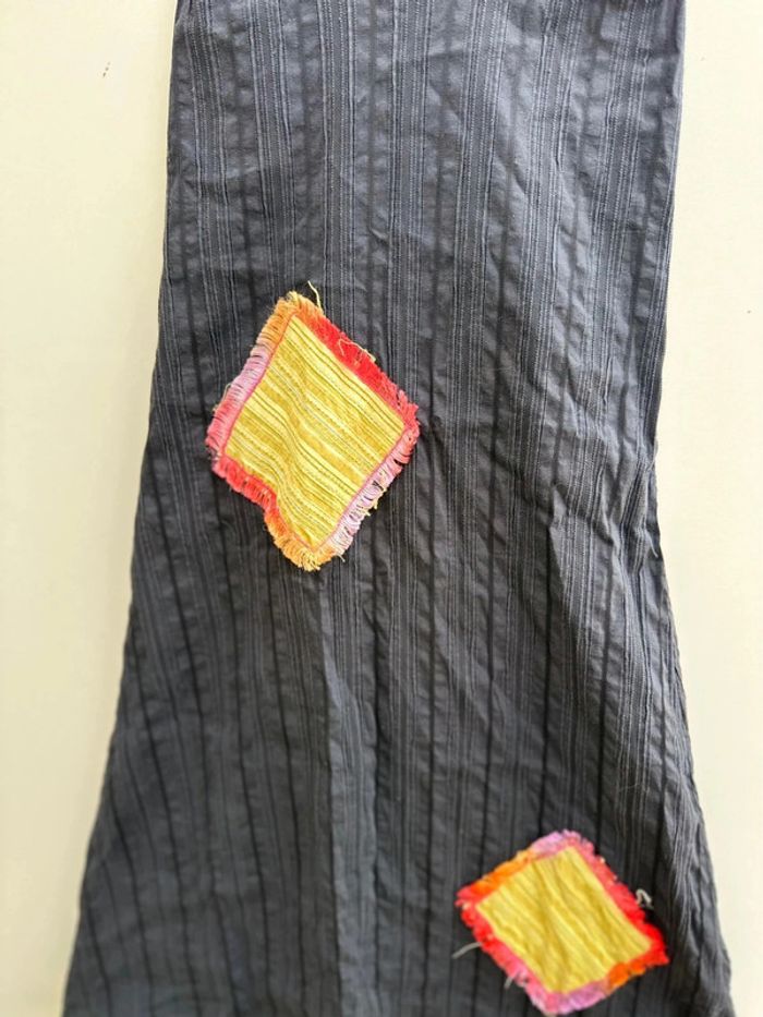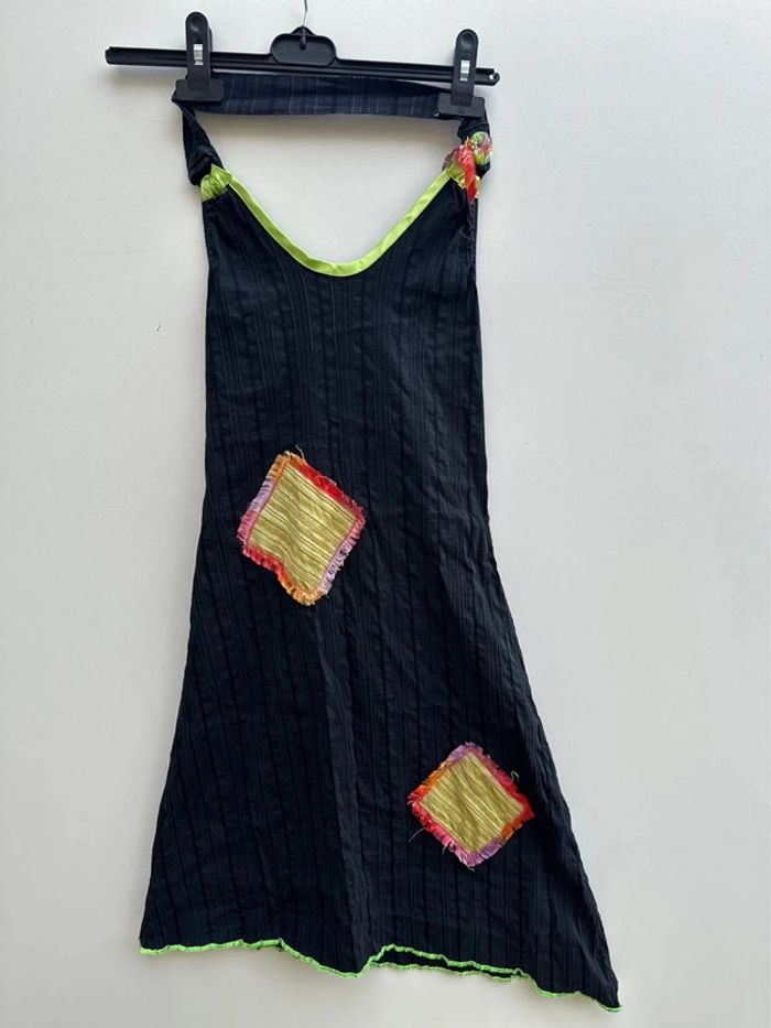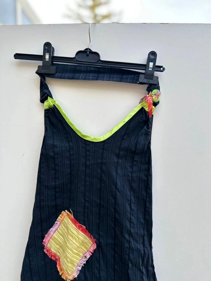 Robe dos nu / asymétrique Matière extensible Taille 3 —> 40 Composition : 65% viscose / 22% coton / 9% polyamide / 4% elasthane Très bon état