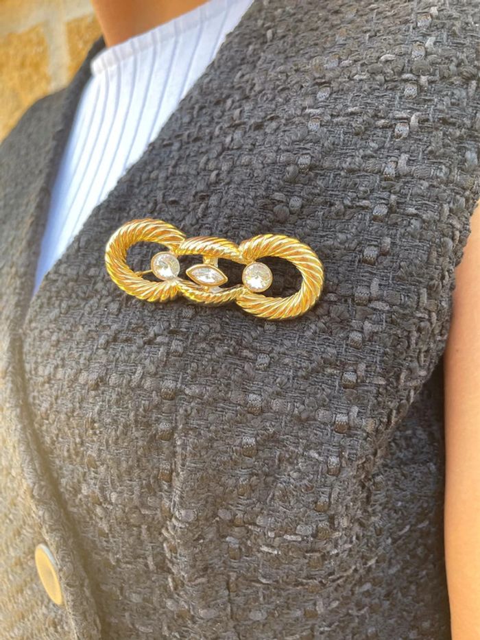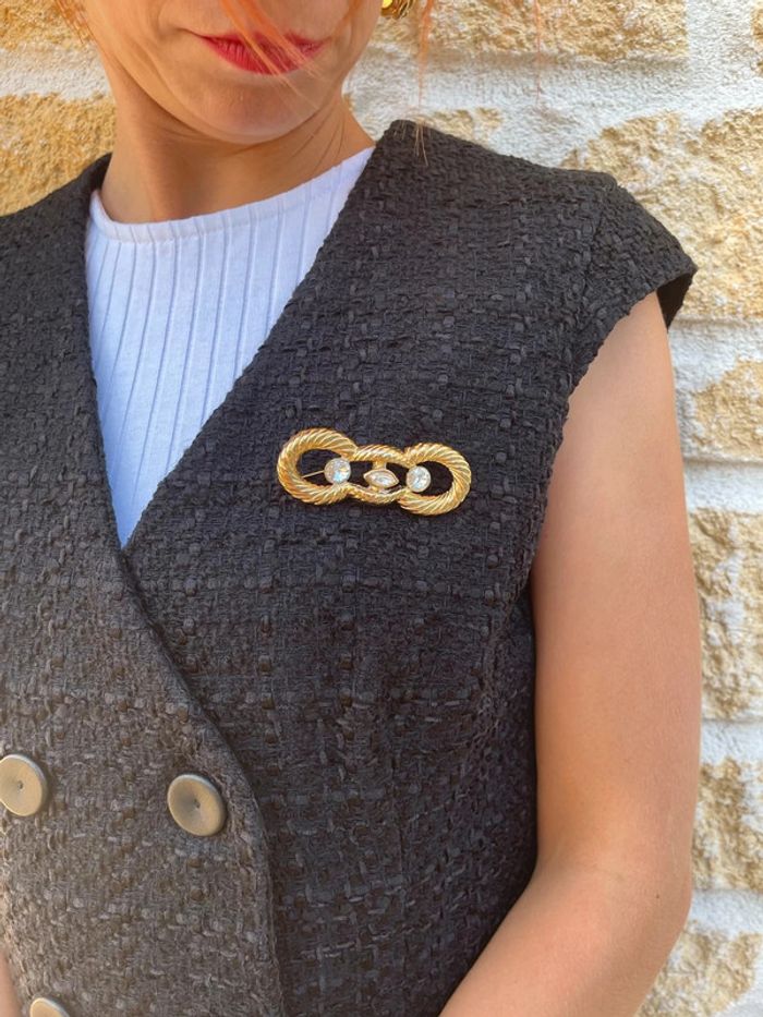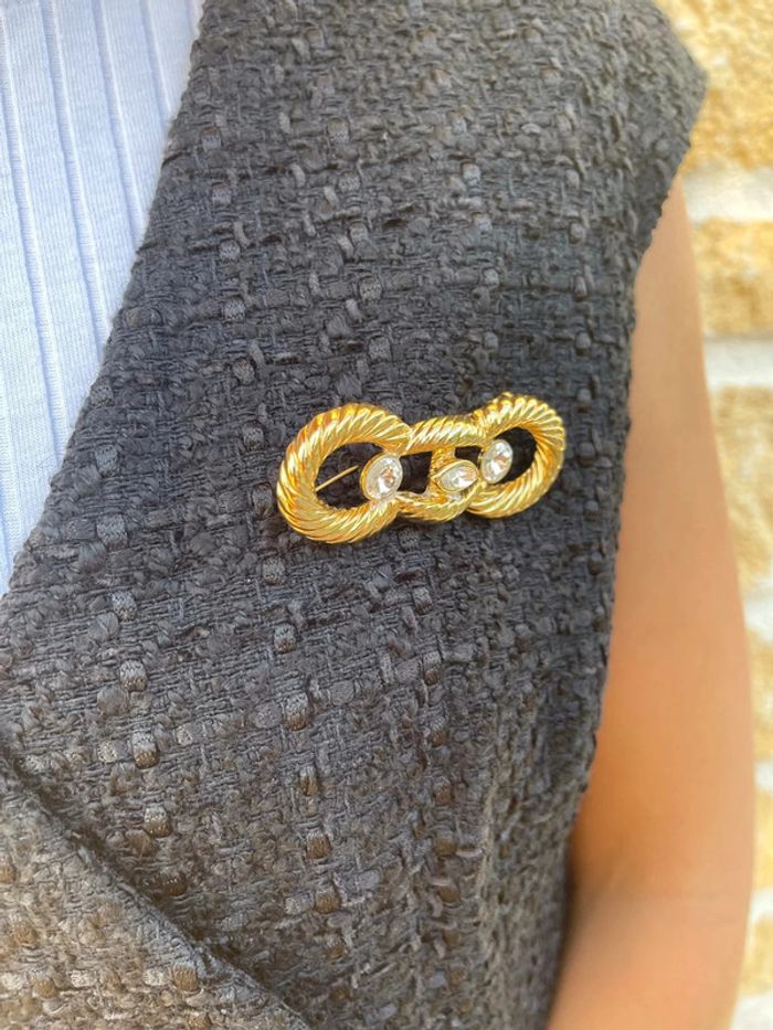 Jolie broche de couleur doré avec 3 petits diamants fantaisie - photo numéro 6