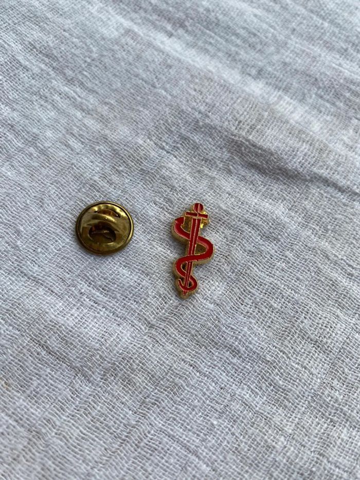 Pin’s Représentant un serpent enroulé sur une épée hauteur 2,1cm de couleur rouge
