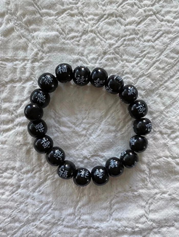 Bracelet noir avec écriture Chinoise - photo numéro 1