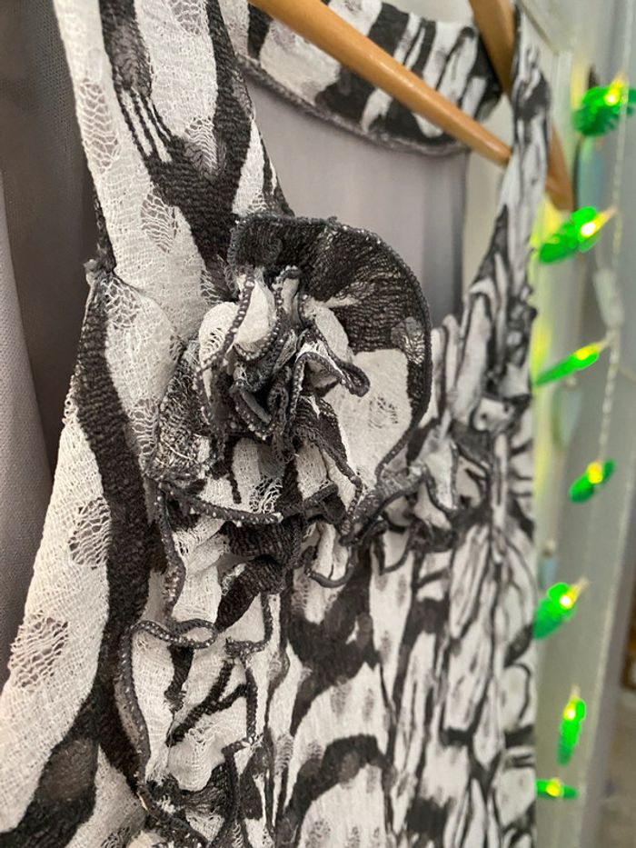 Belle robe dans les tons gris et blanc avec doublure 🏅 taille 40 D’après moi c’est une robe Armand Thierry mais étiquette élevée tissu principal : 95% polyester et 5% eslasthane Doublure : 100% polyester Si vous avez des questions n’hésitez pas à me demander #t