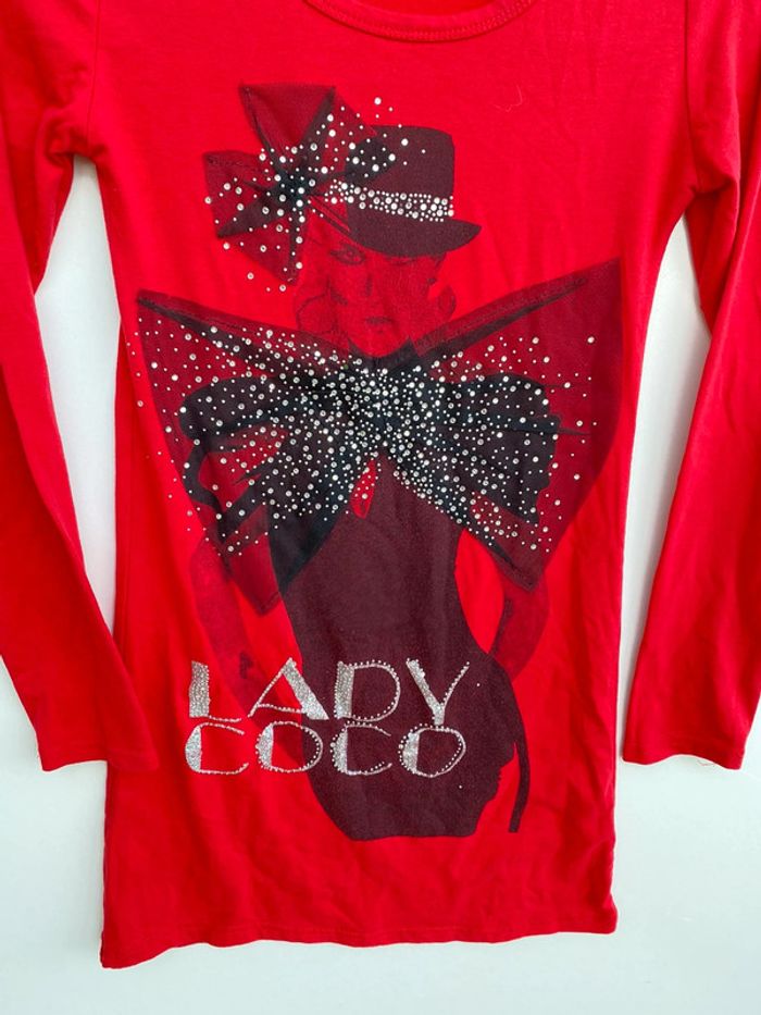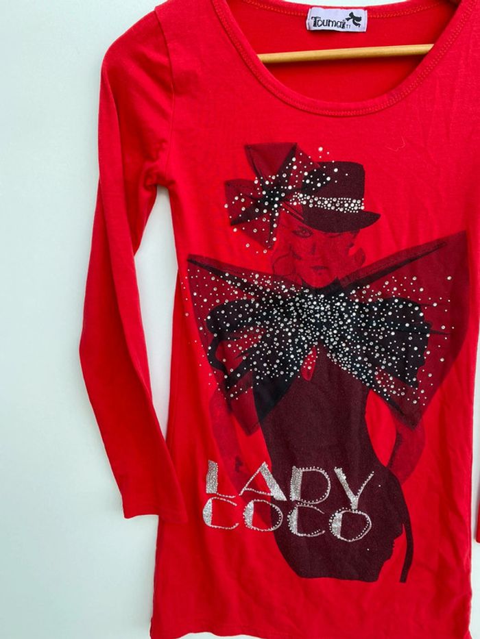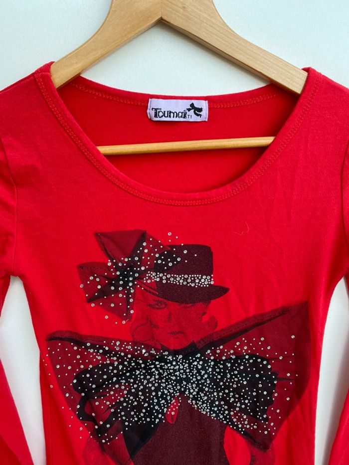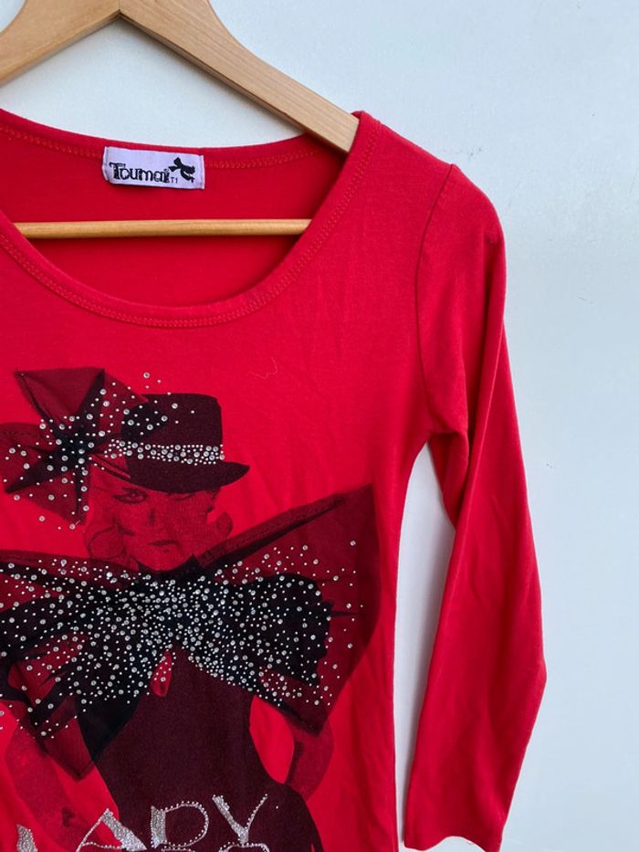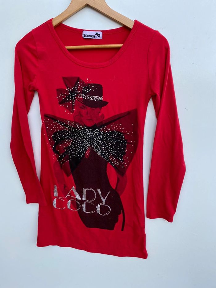Teeshirt ou tunique rouge manches longues Avec Strass Taille 1 ~> 36 Très bon état