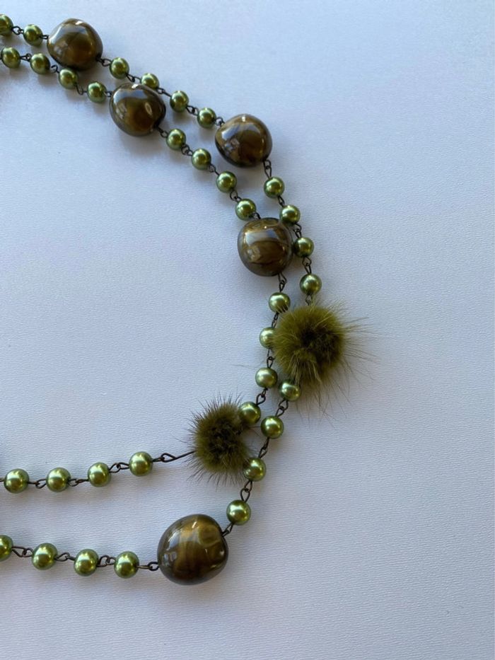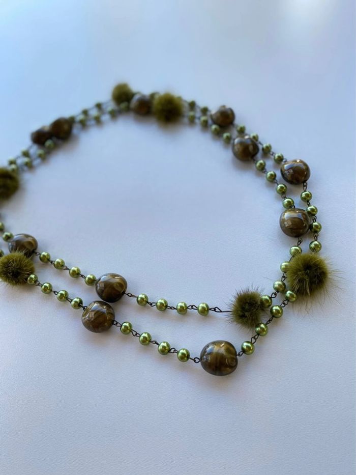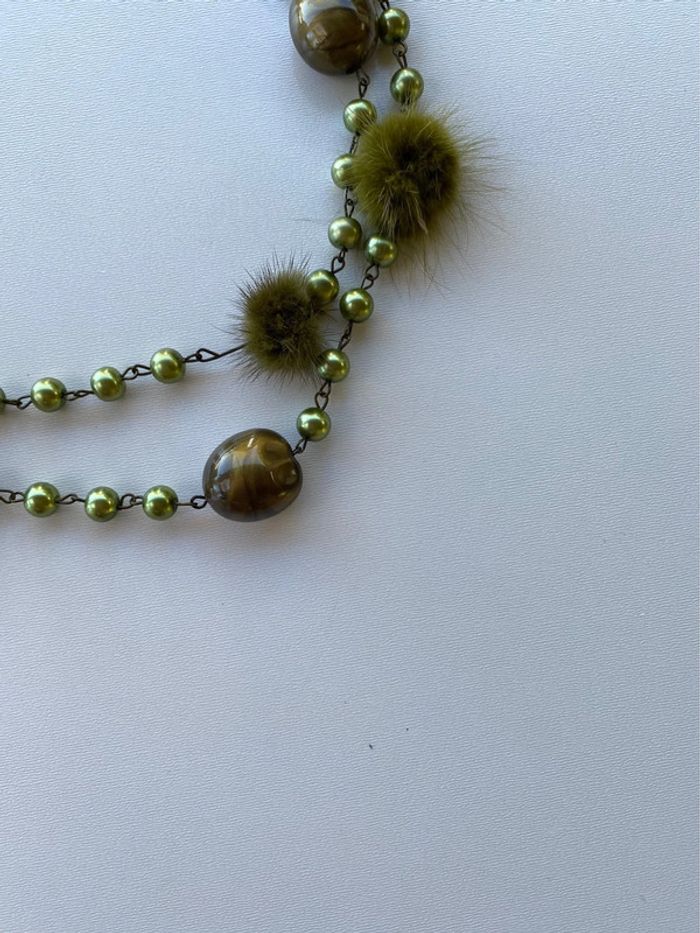 Collier sautoir dans les tons kakis Sans fermoir Très bon état