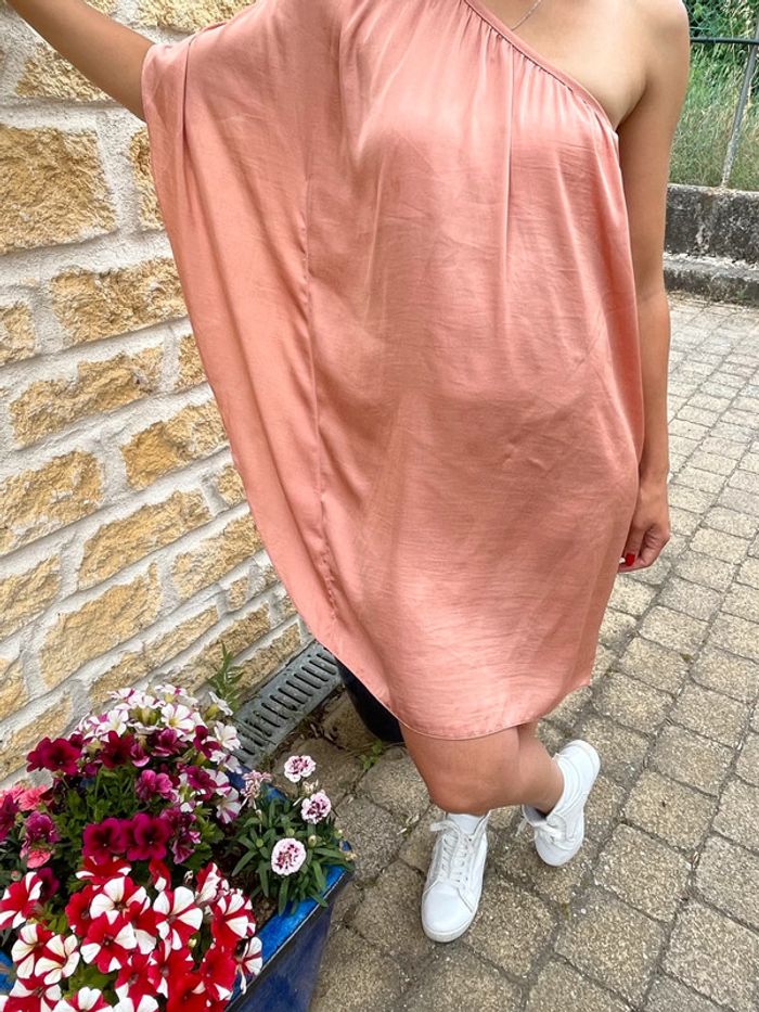 Jolie robe courte à une épaule très légère pour l’été ☀️ Dans les tons de couleur saumon Taille unique En très bon état Tenue idéale pour aller à la mer 🌊