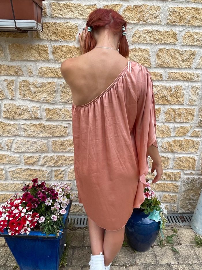 Robe courte à une épaule couleur saumon - photo numéro 2